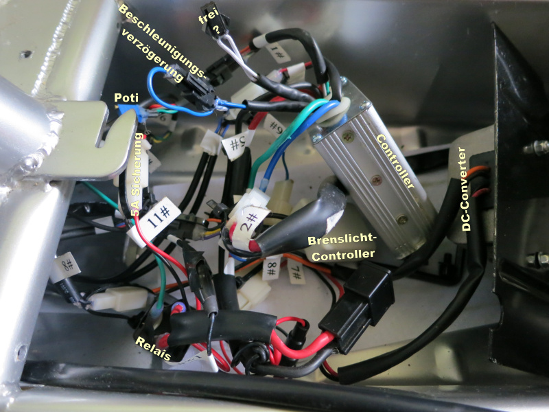 Hmm okay habe mal alles geöffnet und es sieht genauso aus wie auf deinem bild. Was ist denn der dc wandler? Der ganze Controller? Ist der nicht  abgesichert? Die 5A sicherung ist ok die 40 A auch. Motor läuft auch, aber ich bezweifle das der Akku wieder neu geladen wird. Das Ladegerät blinkt permanent rot.