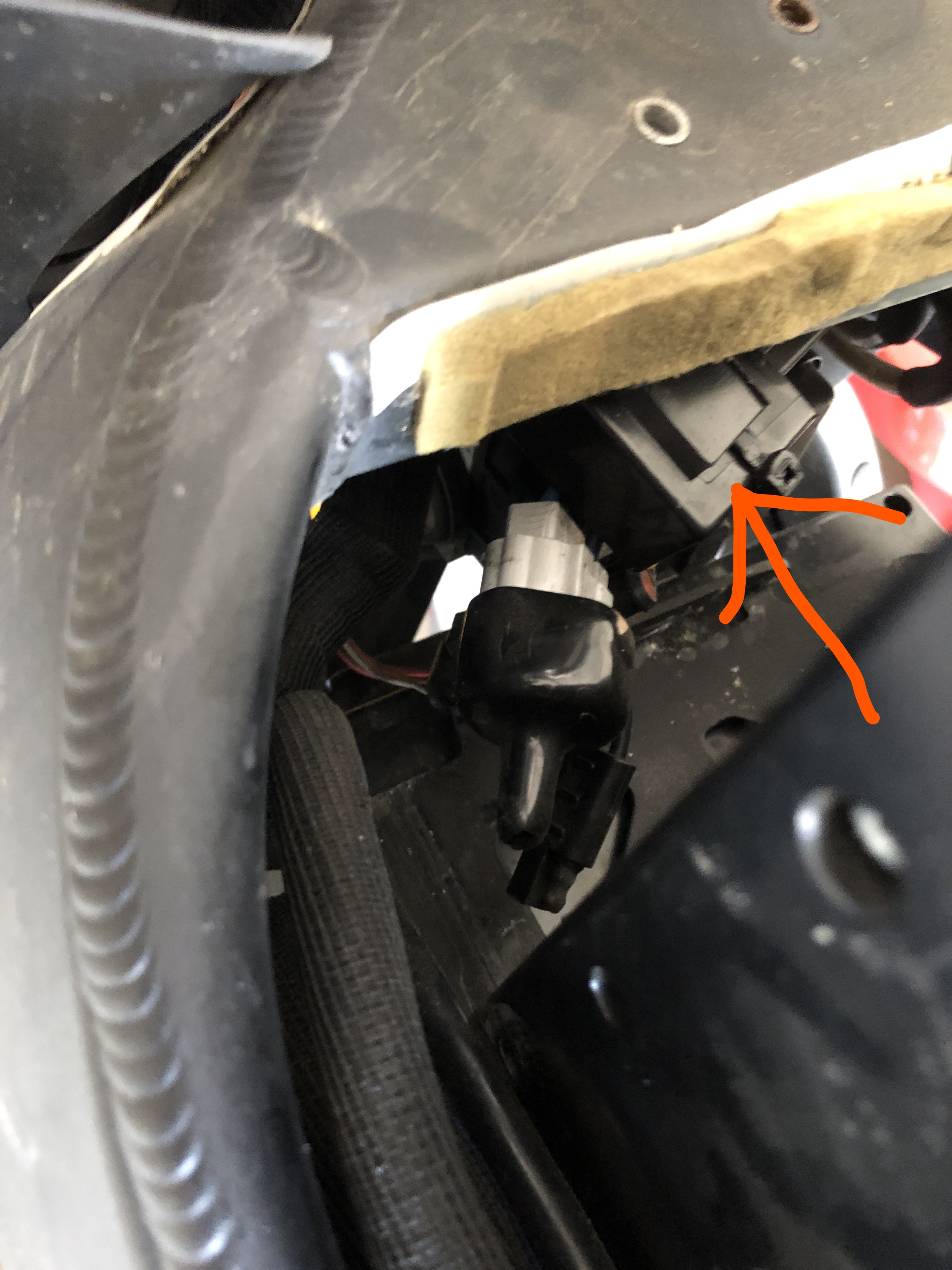Bin relativ sicher, dass das Blinkerrelais vorn unter der vorderen Querstrebe des Rahmens wohnt. Diese Bilder sind von meiner Suche nach dem 12V Accessories Stecker am selben Ort (dem grauen), roter Pfeil auf das vermutete Relais: