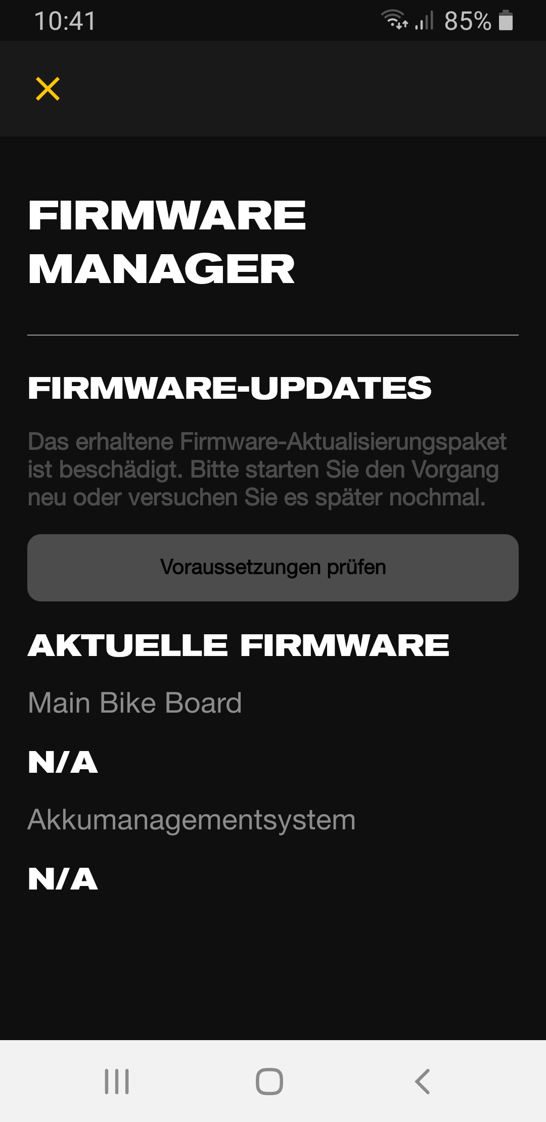 Als ersten Schritt wollte ich die Firmware auf eine Updatemöglichkeit checken. Die App verbindet sich mit der Zero, allerdings kann ich weder die aktuelle Firmware auslesen, noch auf update prüfen. (siehe Fehlermeldung).