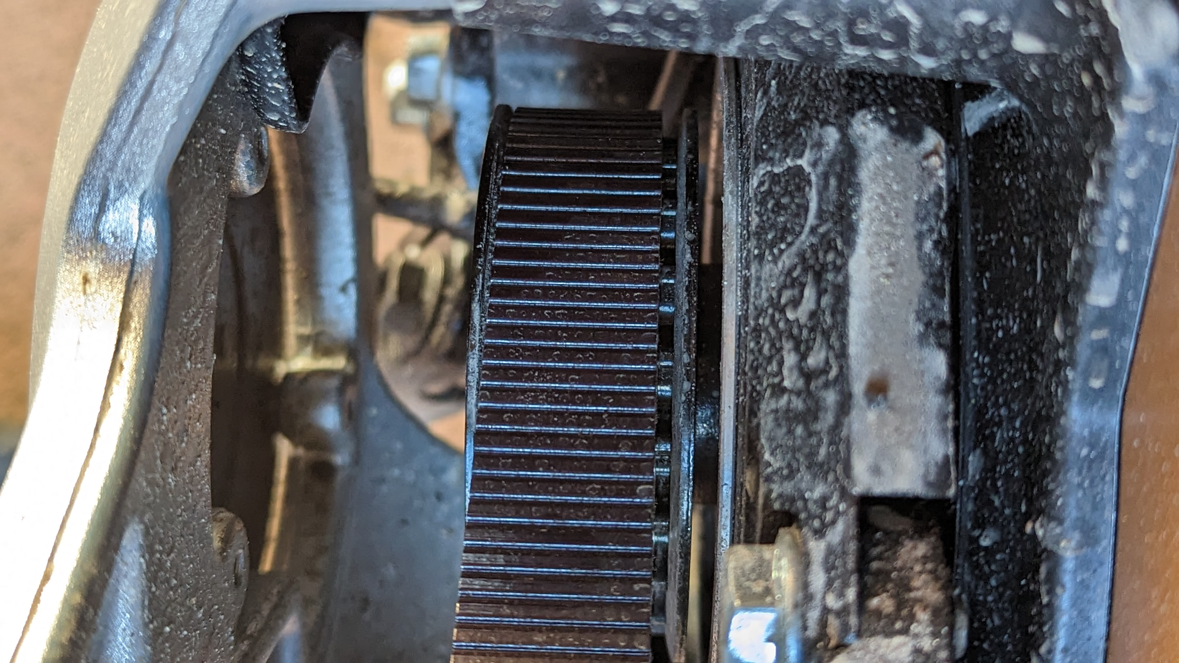 Ansonsten fahre ich noch einen Yamaha Roller mit Riemenantrieb. Hier läuft der Riemen meist auch nicht genau mittig.