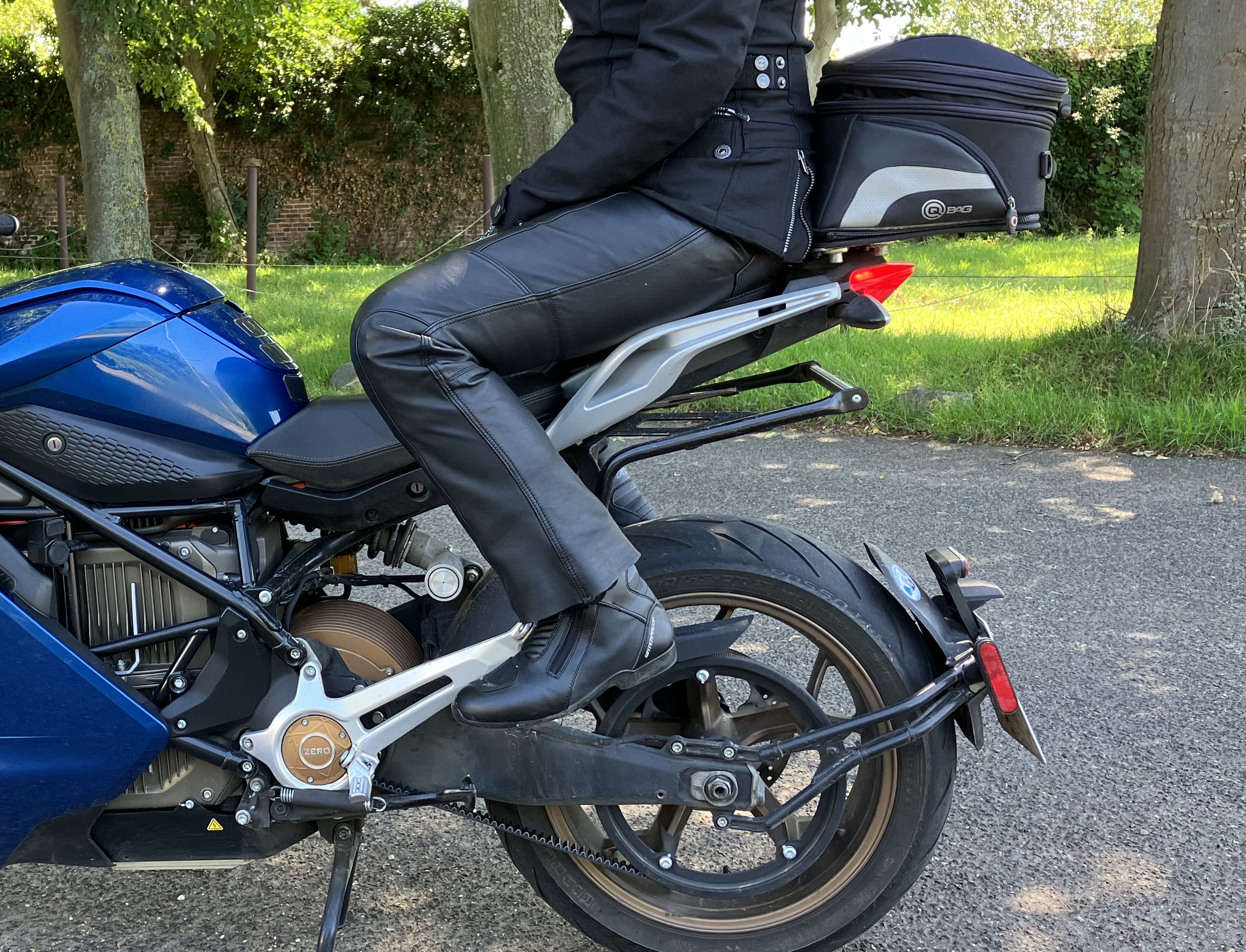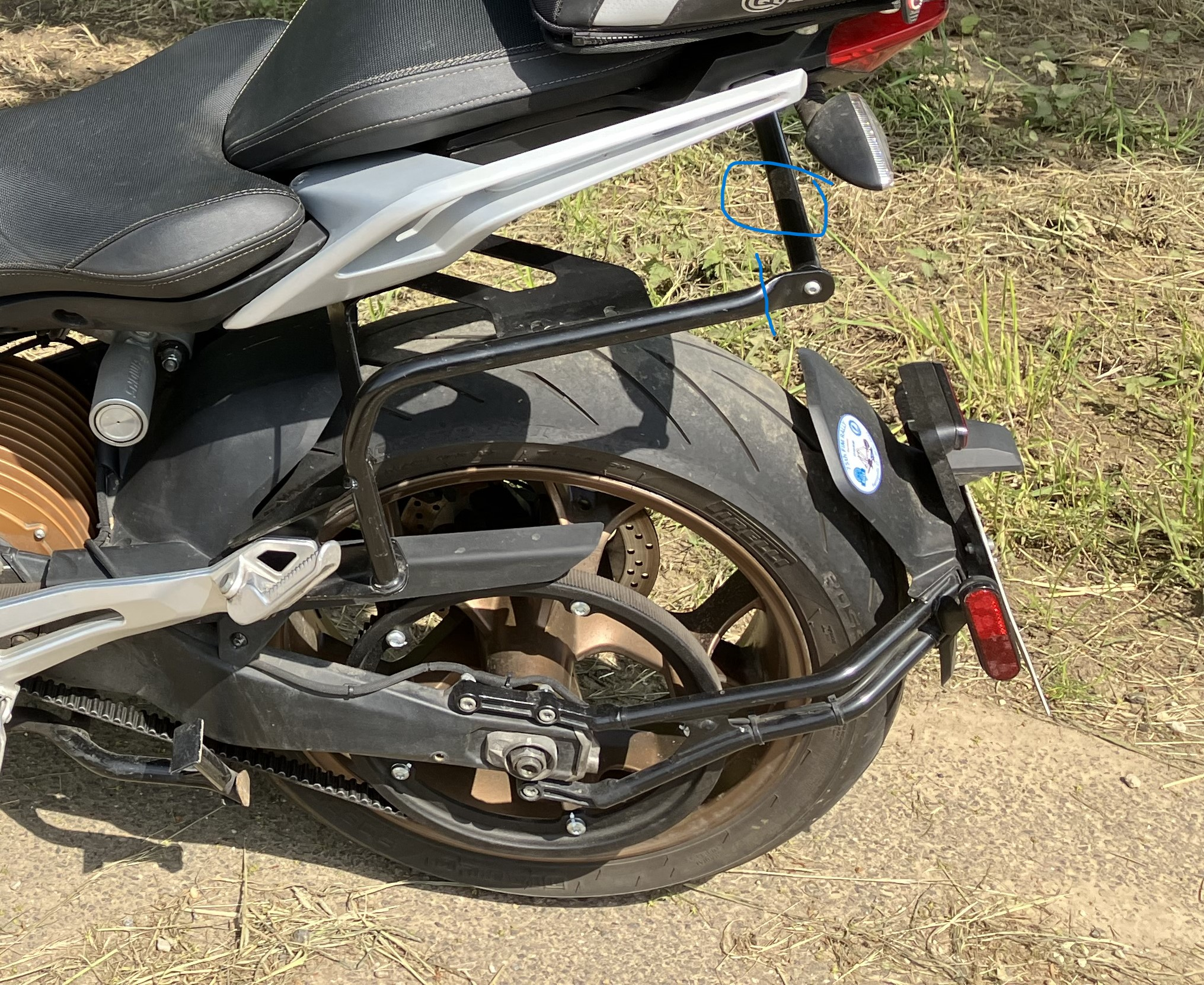 Apropo Zubehör. Ich finde eine Hecktasche unauffälliger als ein Topcase, hier meine Lösung für das Ladekabel bei der SR/S. Ohne Zugriff auf eine Laserschneidemaschine, wurde die Grundplatte für‘s Zero-Topcase benötigt und da eine Hecktasche von QBag drauf gesetzt. Verstellbar in 2 Positionen. Solo oder 2up.