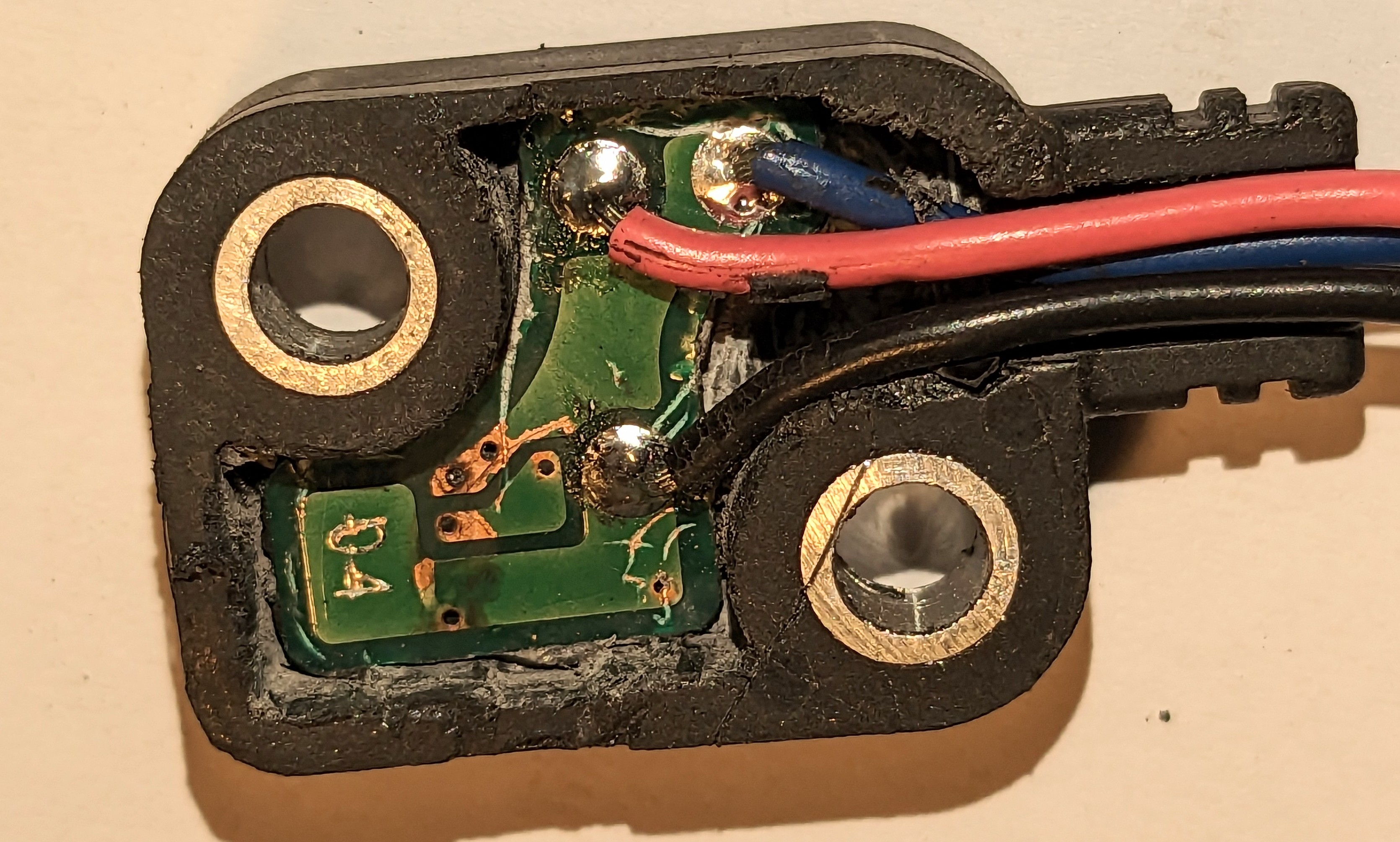 Der Sensor geht aber wieder nachdem ich den abgerissenen Hallsensor wieder aufgelötet habe. Diesmal mit dem guten bleihaltigem Lot.