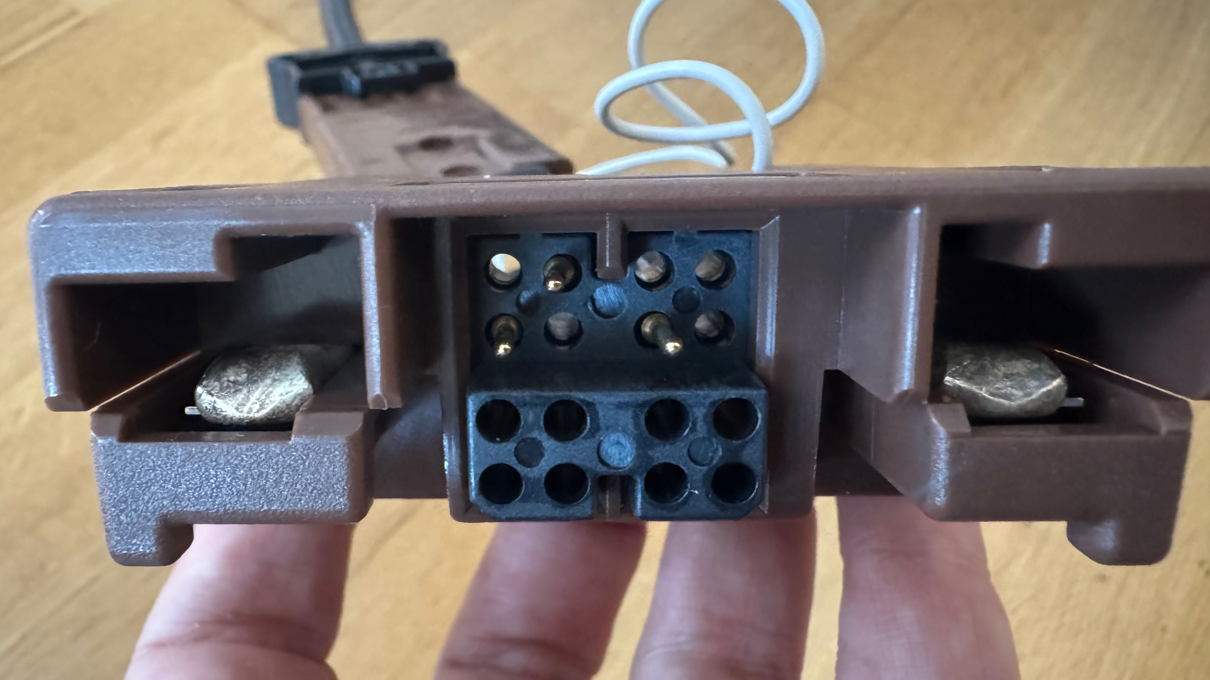 D.h. es bleibt nur zu prüfen, ob der korrekte mittlere Pin vom batterieseitigen Stecker des Adapterkabels mit den 100kOhm beglückt wird. Ich grabe nochmals nach in meinen Unterlagen...
