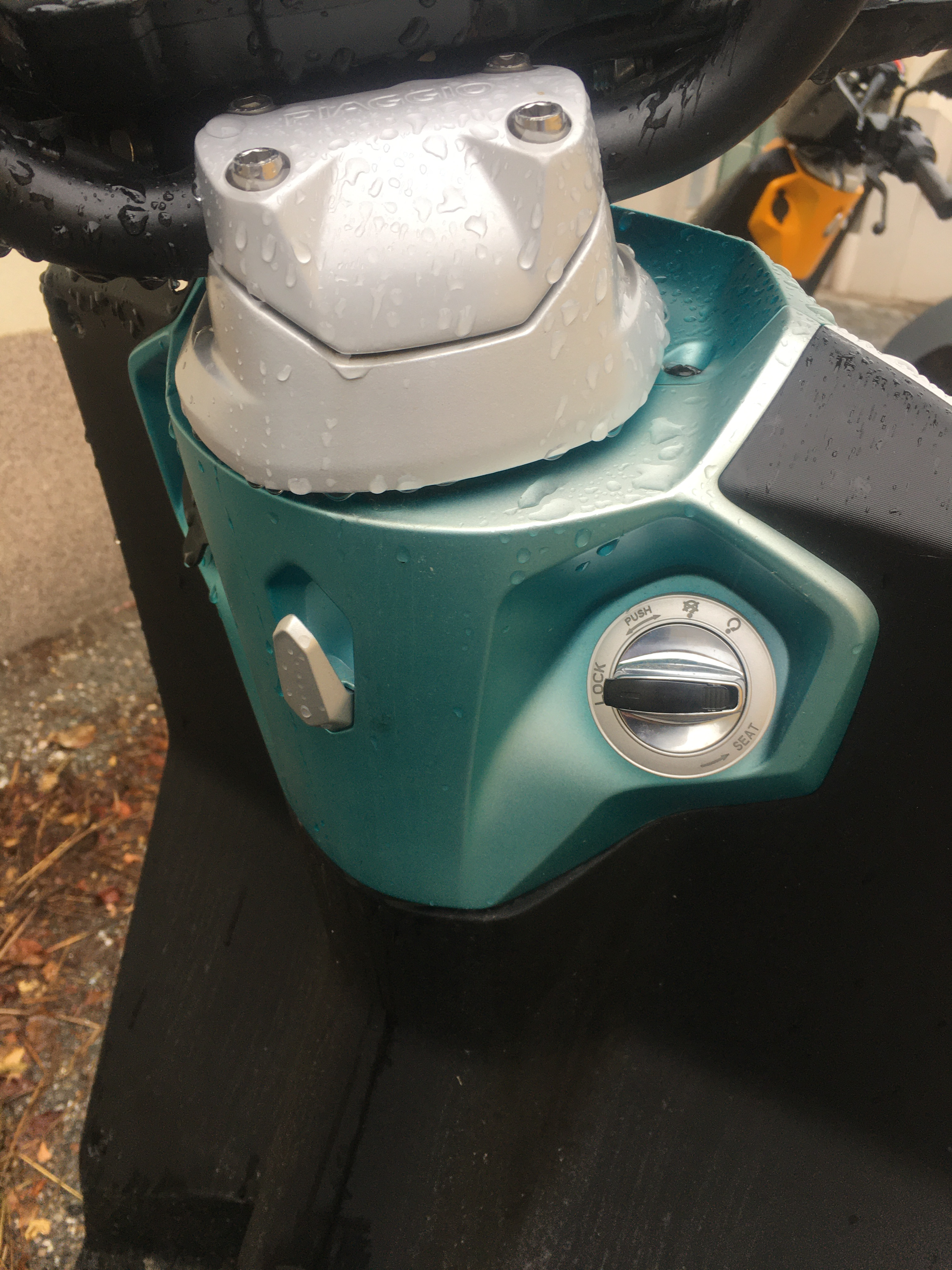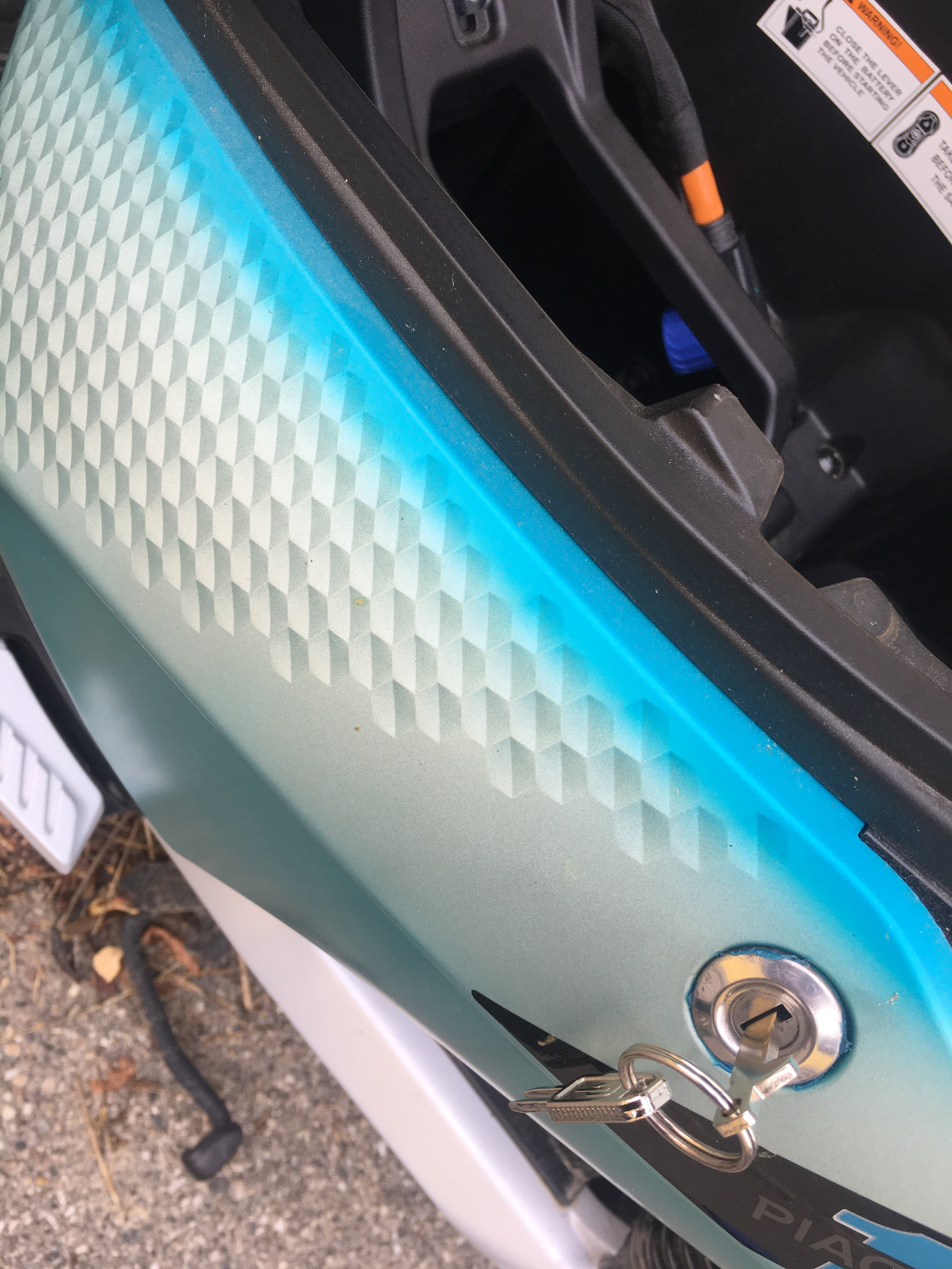 Scheinbar ist die Piaggio One ein reiner Indoor-Roller. Sonne in Mitteleuropa mag der Roller nicht. In der zweiten Saison sieht der Roller bereits so aus.