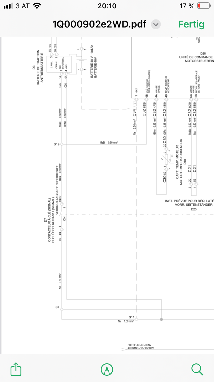 Habe mittlerweile einen Schaltplan kostenpflichtig herunter geladen. Müsste es nicht genügen einen Bügel am Akku zu setzen und dann die 48v zu messen?