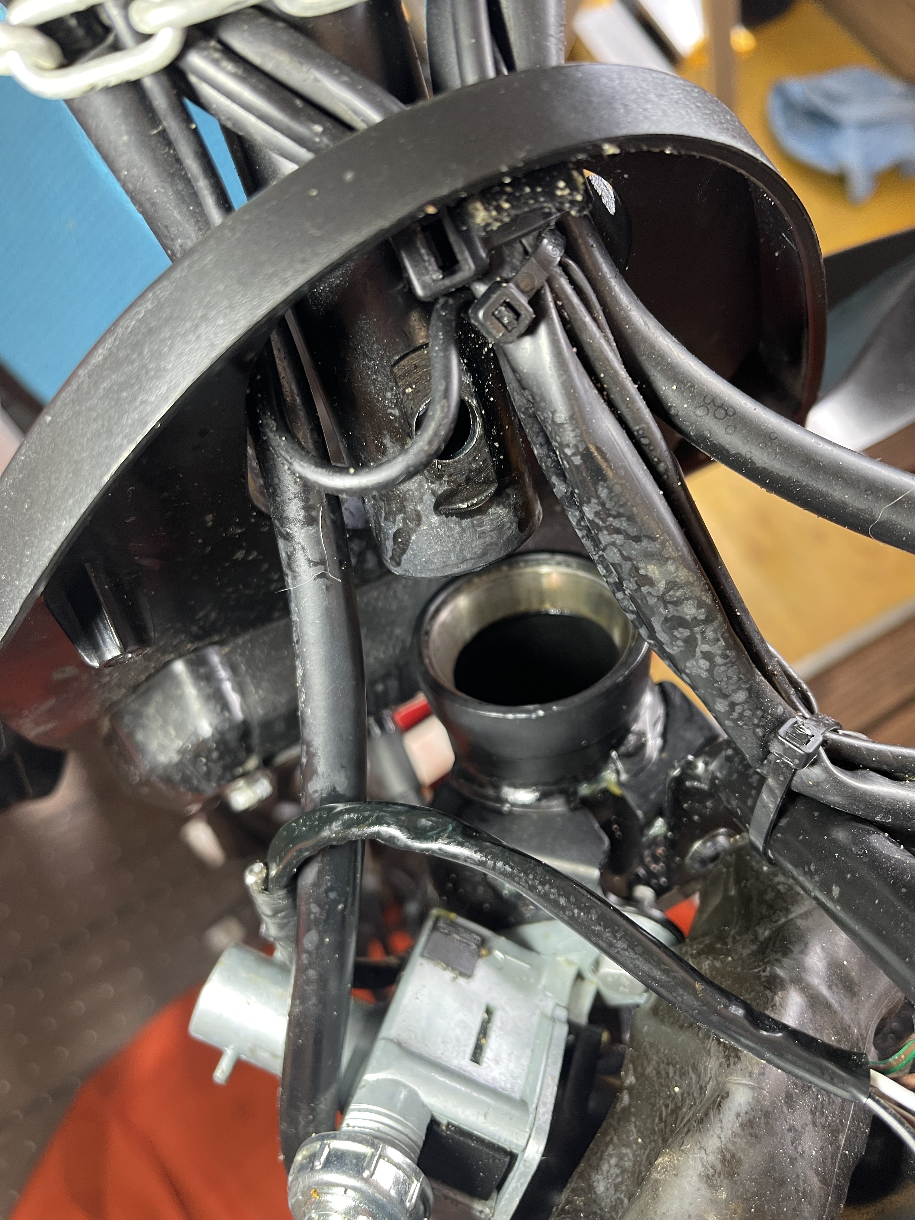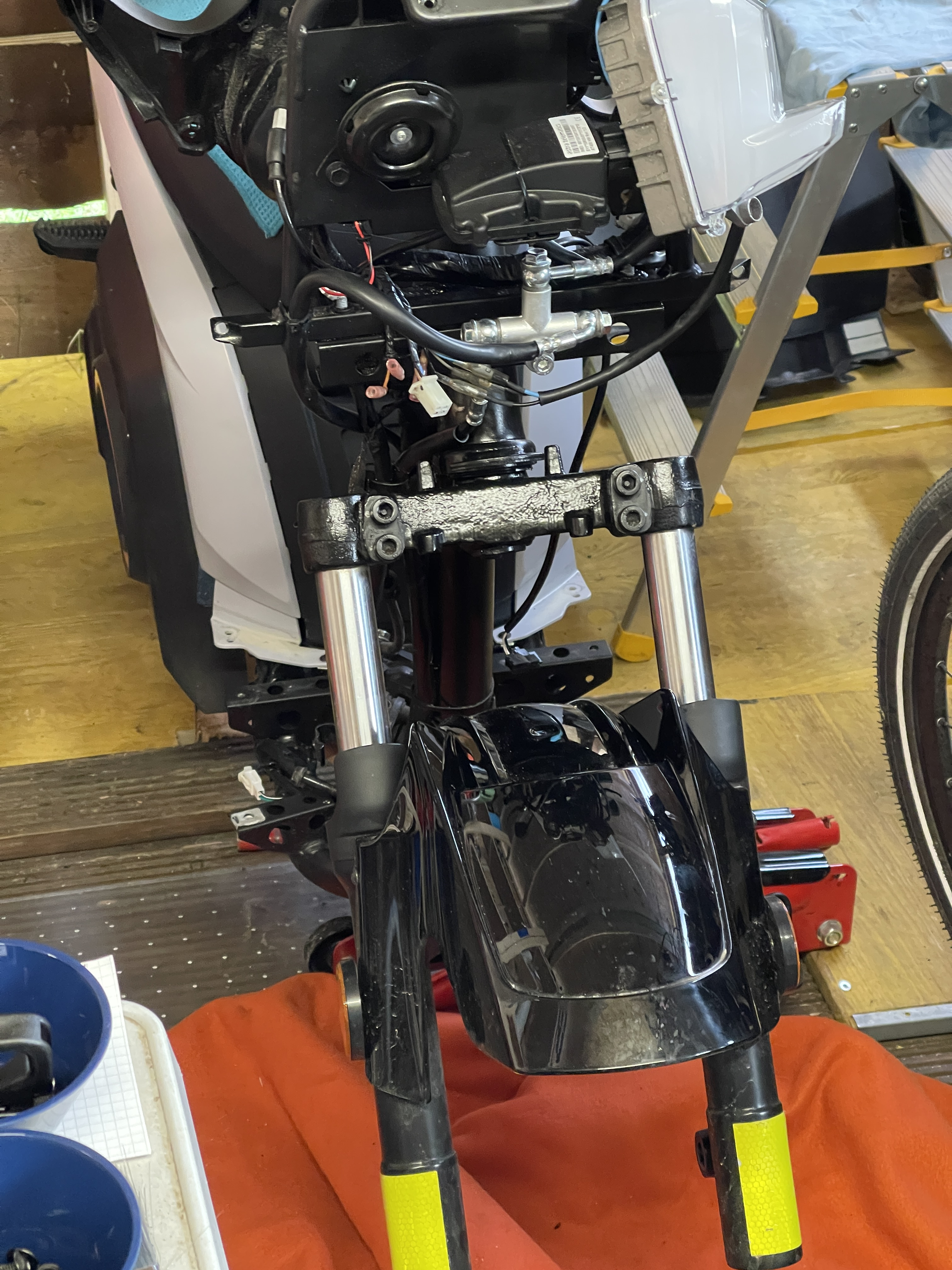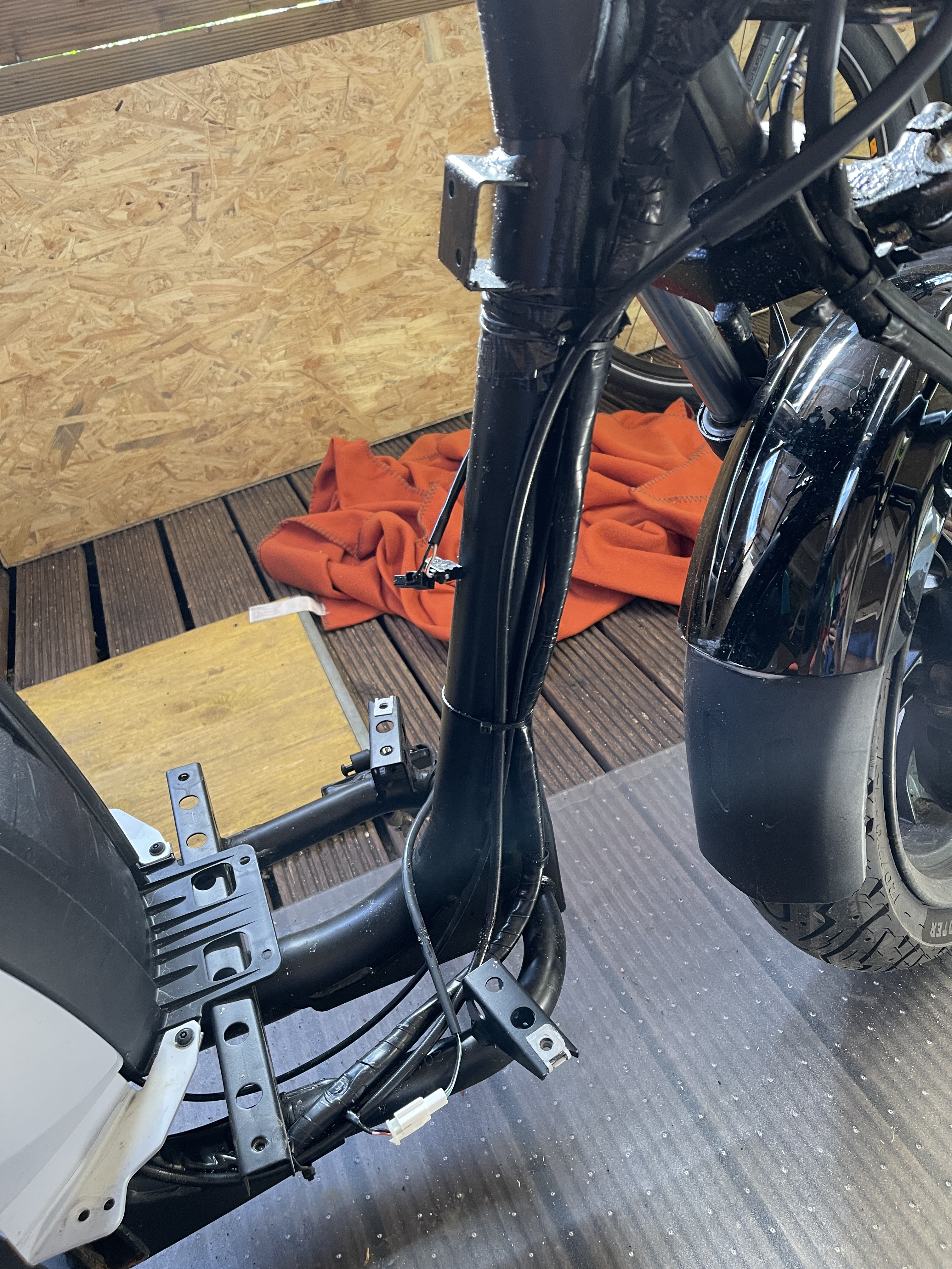Gleich auch die Kabel und Bremsleitungen besser verlegt. Lenkt jetzt besser als wie Neu.