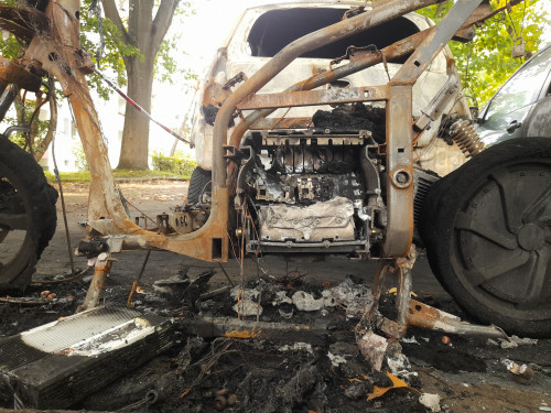 vor allem wurde noch mehr beschädigt, da steht noch ein angebrannter wagen.... hoffentlich gut versichert.