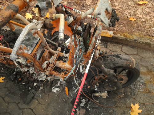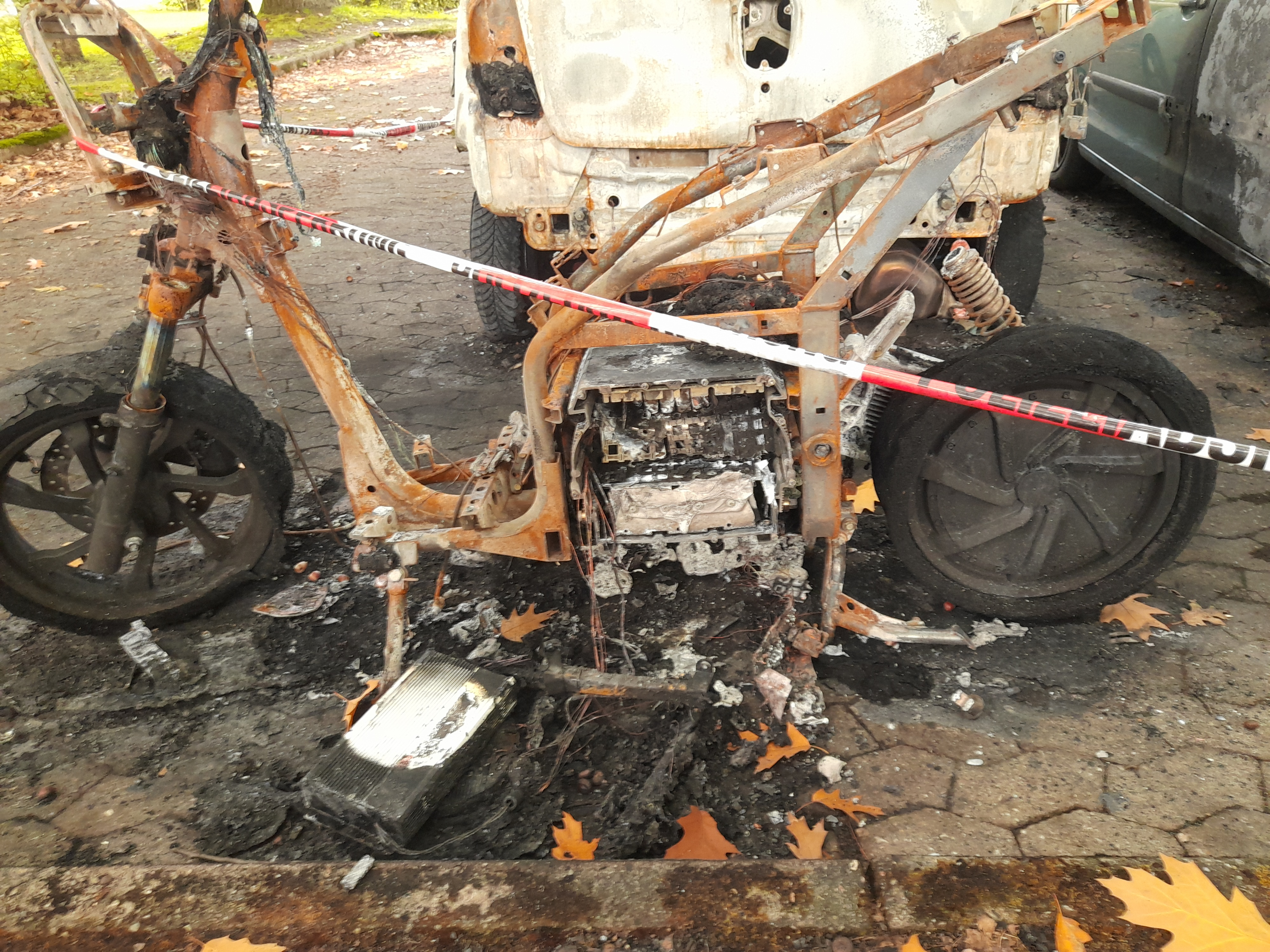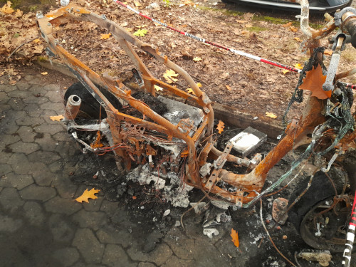 Ich bin etwas überrascht, dass die Reifen überlebt haben. Der Akku als Brandquelle liegt nahe, das hat aber offenbar die Plastikteile und Sitzbank abgefackelt, oder war die Feuerwehr schnell genug?