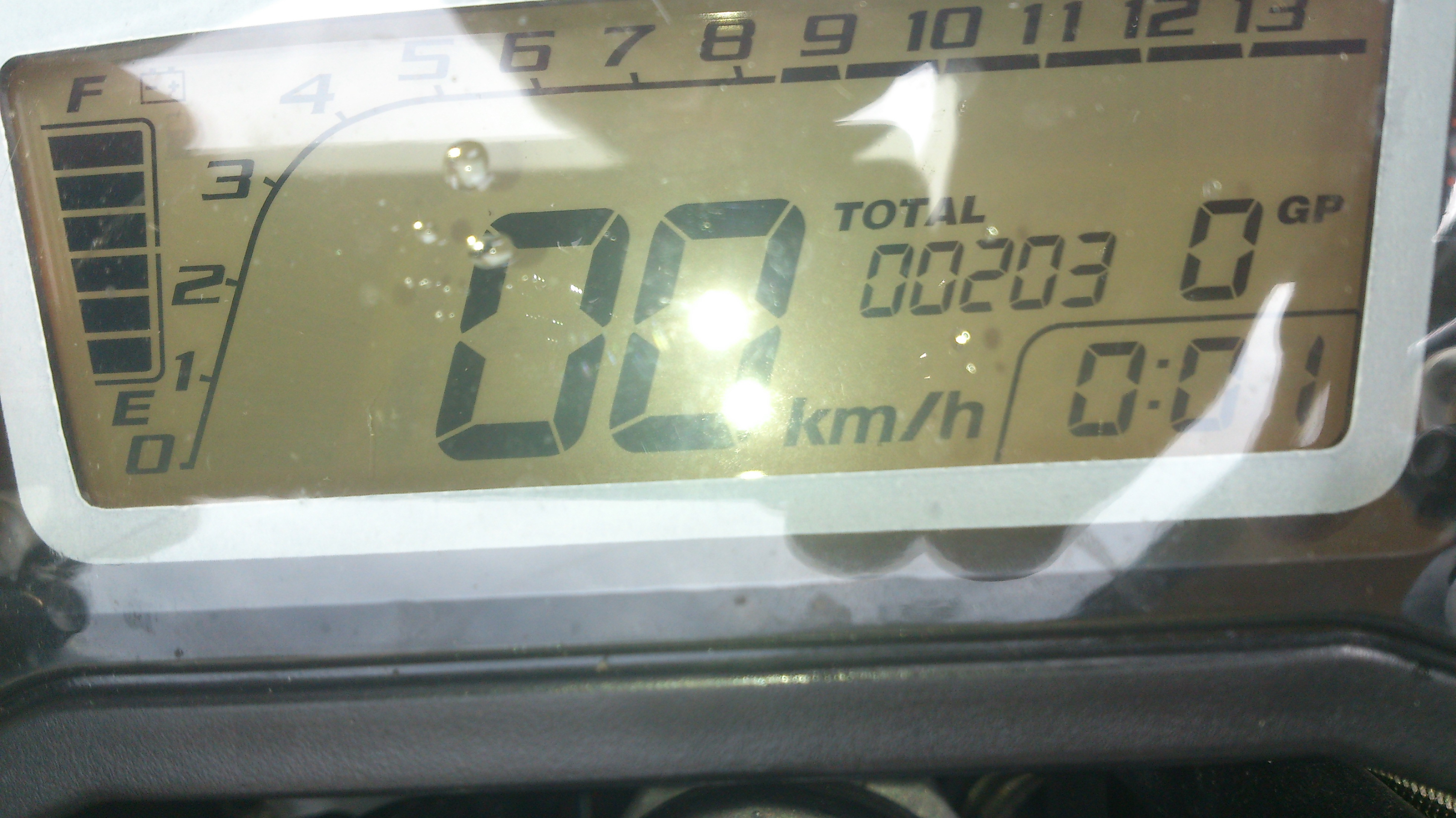 Danach gefahren, Km-Stand 203 Km insgesamt abgelesen, also exakt 30 Km Fahrstrecke mit 45 Km/h im Mittel.