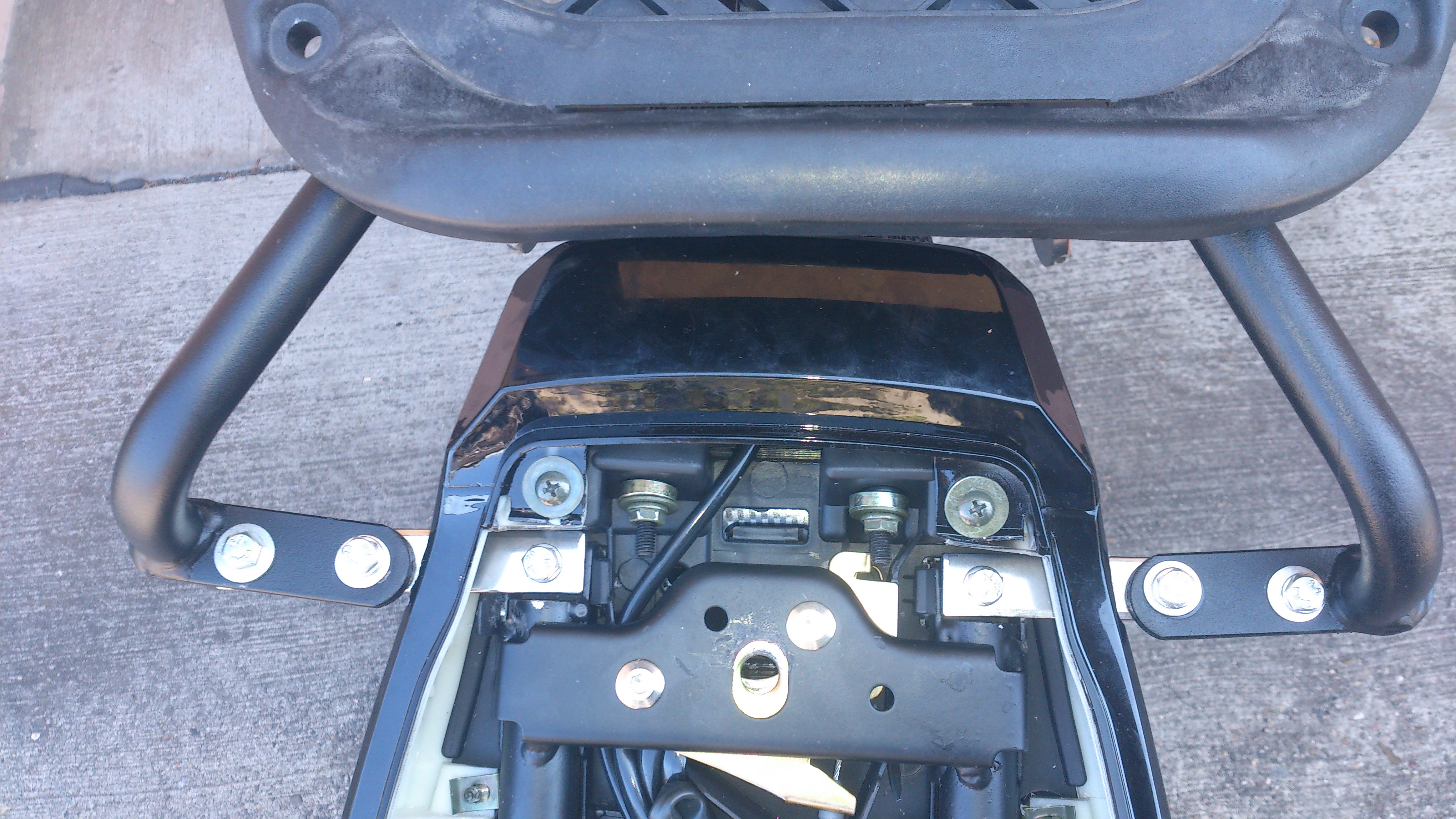 Das dritte Bild zeigt, dass die Trägerplatte für das Top Case, über dem Rücklicht/Bremslicht nach oben wegsteht.