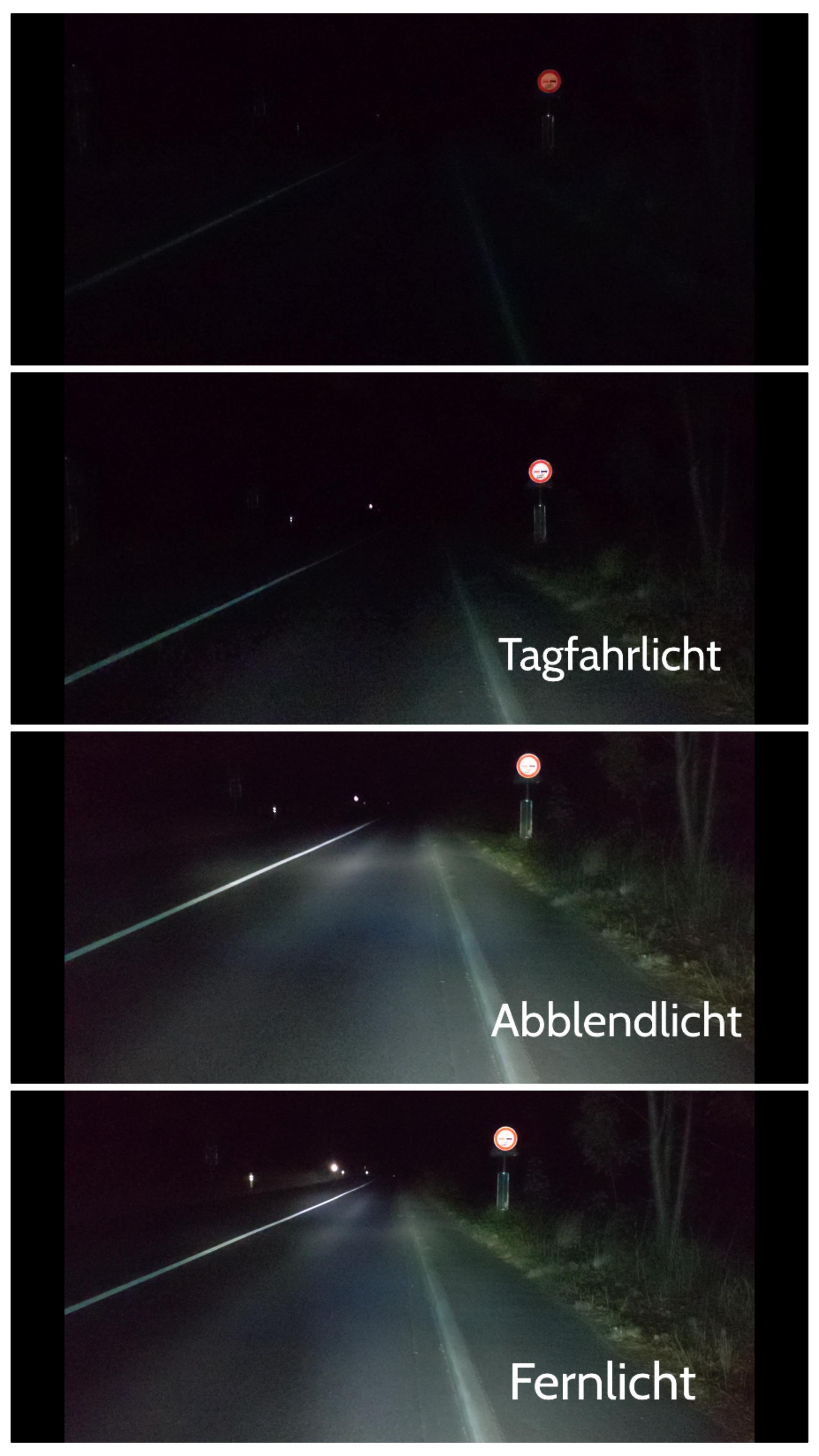 0: Oberstes Bild: Motor aus & alle Lichter AUS (die minimale Lichtreflektion die am Schild zu sehen ist kommt von einer Ampel hinter mir, wollte mit dem Bild nur zeigen wie dunkel die Straße ist)