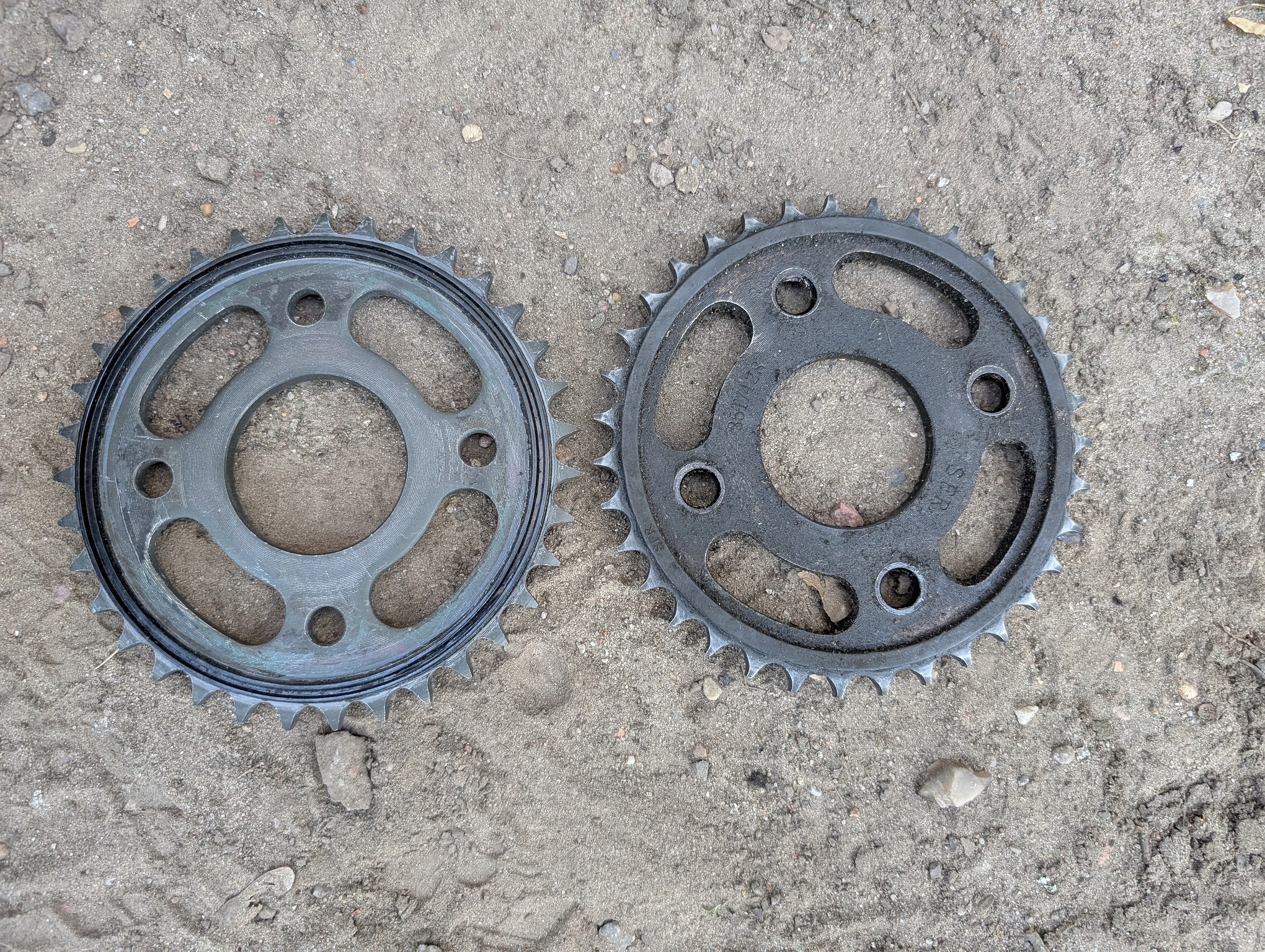 Häufig ist so ein Ritzel auf einen Kegel gepresst, so dass man einen Abzieher braucht, der außen ums Ritzel herumgreift, und in der Mitte eine Schraube hat, die sich auf der Motorwelle abstützt.