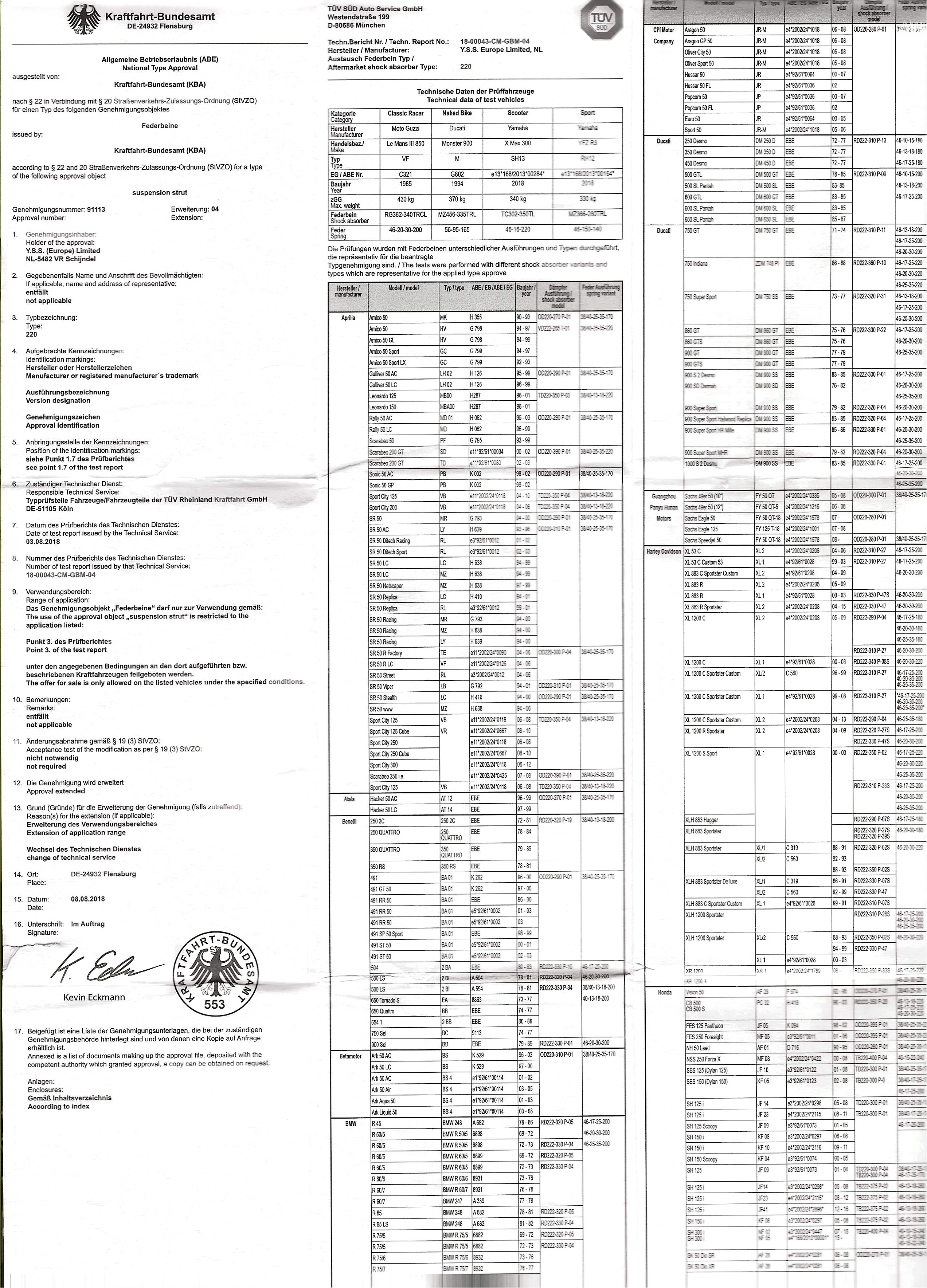Daher möchte ich fragen ob die Eintragung nicht doch möglich ist? Es gibt für diese Stoßdämpfer eine ABE und eine Freigabe für eine Vielzahl vergleichbarer Fahrzeuge. In der Anlage ist eine Kopie der ABE beigefügt.