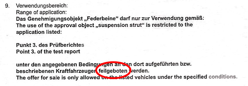 Tja das scheint da zu stehen. Du hast diese Federbeine ja auch glaube ich. Wie hast du das mit dem TÜV gemacht?