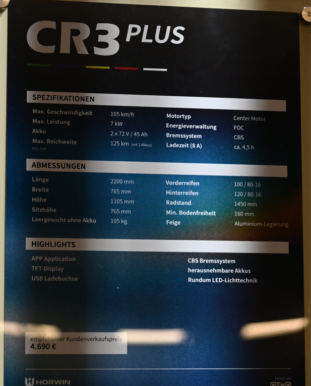 Dann steht dort anscheinend wirklich die bisherige SK3 Plus, auch wenn es von Horwin anders angekündigt wurde. Von einer App Anbindung steht auf dem Datenblatt ja auch nichts.didithekid hat geschrieben: ↑Mo 9. Dez 2024, 23:17Hallo,