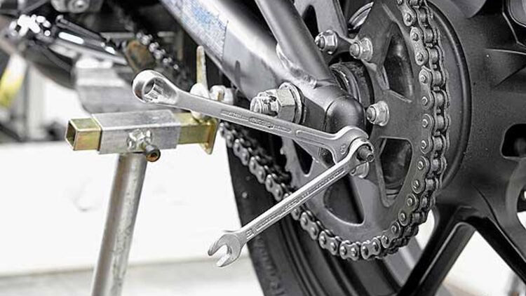 Es gibt beim EK3 keine Kontermutter. Man muss die existente Mutter entsprechend lockern. Dann muss das ganze Hinterrad wieder bis zum Anschlag der gelockerten Muttern(beide Seiten natürlich) und dann kann man diese wieder festdrehen, jedoch nicht im Sinne von bis sie fest ist, sondern nur bis das Kettenspiel bzw. das Rad parallel in der Schwinge sitzt. Wenn das passt kann man die Schraube an der Radnabe wieder festziehen. Anschließen kann man die kleinen Muttern zum Einstellen des Kettenspiels, sollten sie noch locker sein, mit sehr wenigen NM anziehen, sodass diese sich nicht lösen.