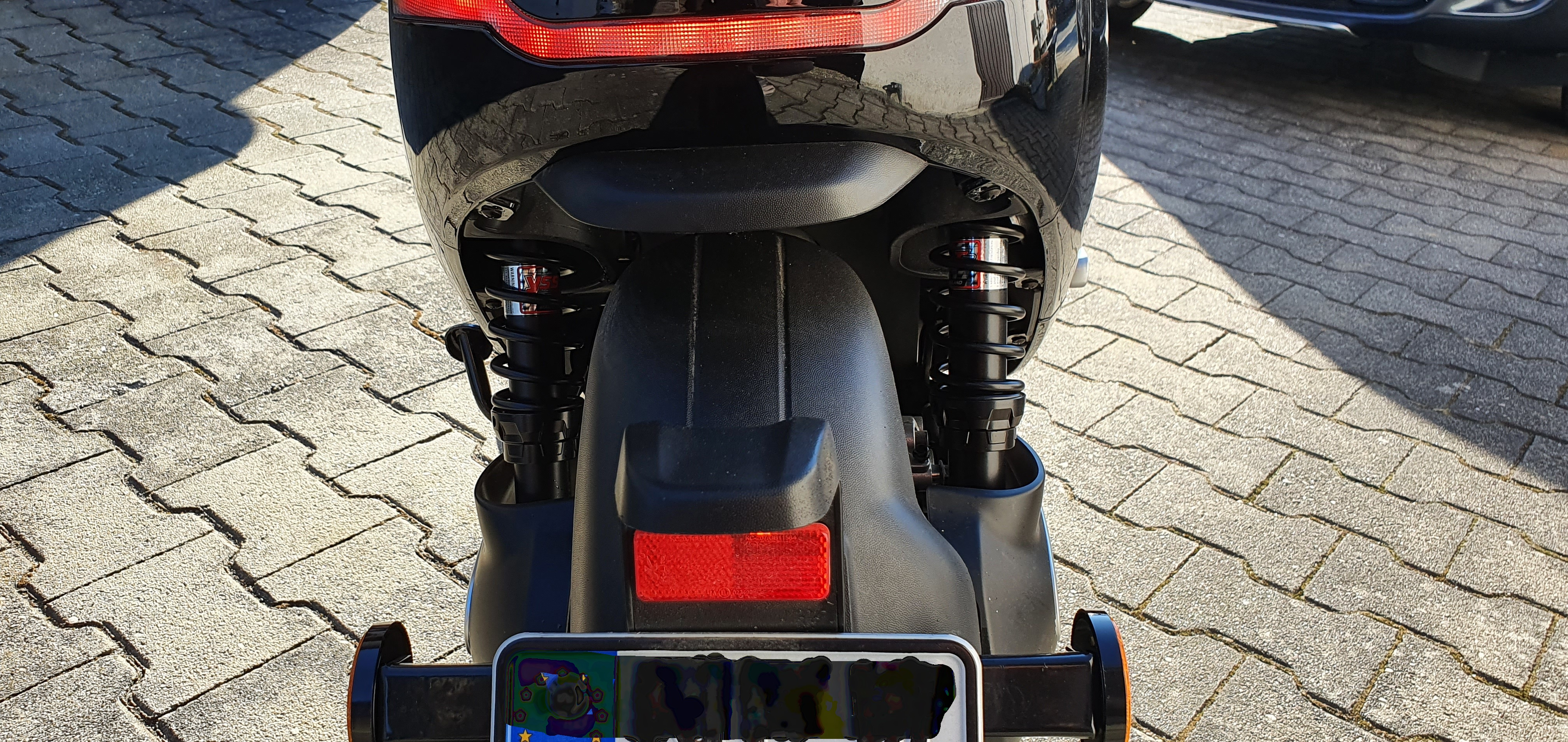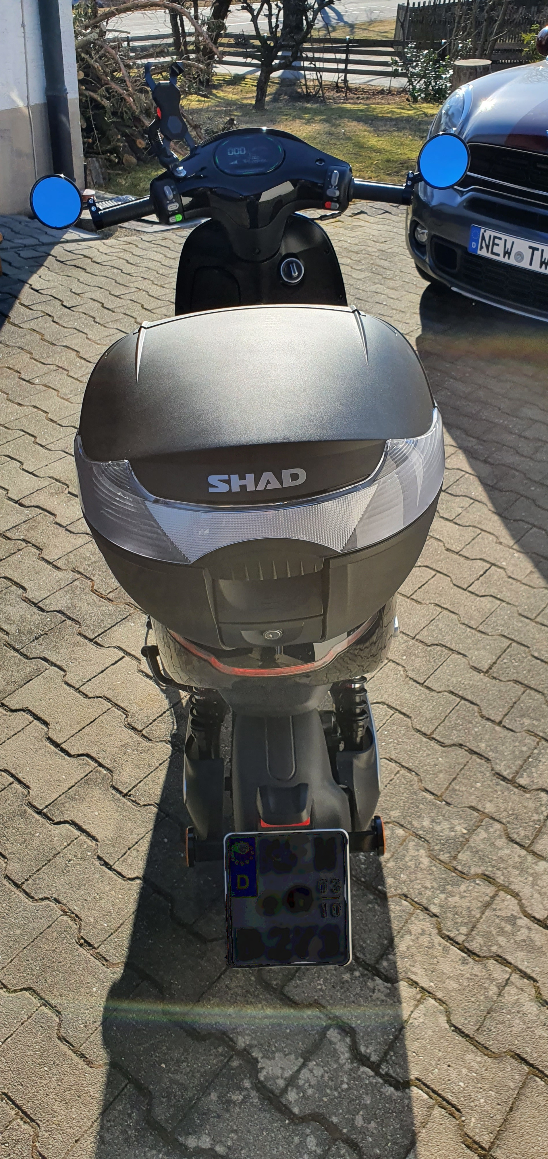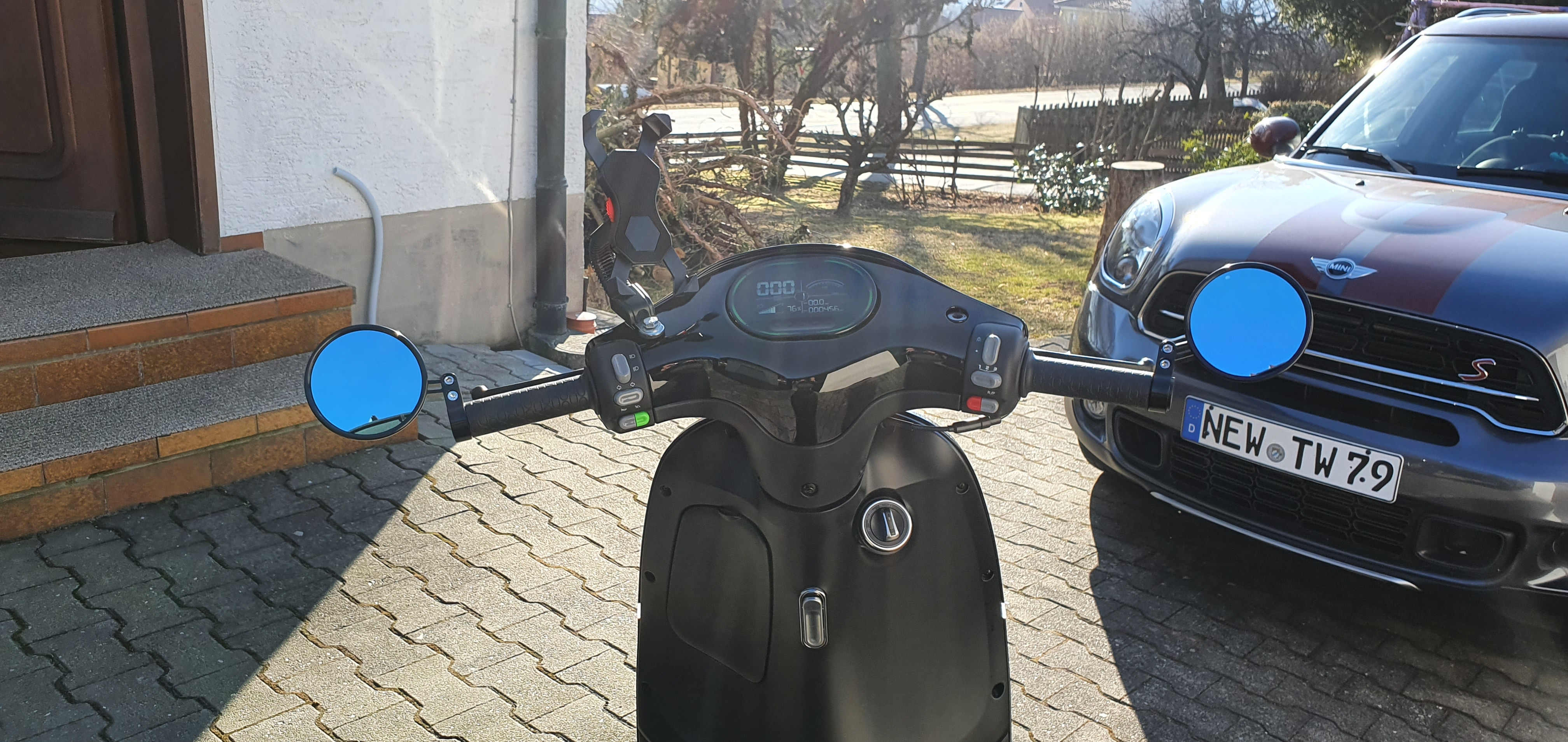 Bisher sind wir mega zufrieden mit der Erwerbung. Die bereits in diesem Forum beanstandeten Mängel haben wir behoben. Z.B. Federbeine hinten sind jetzt von YSS, die beiden Spiegel haben wir durch diese ersetzt, Evermotor Universal E24 CNC Aluminium Klappspiegel. Zum klappen hat den Grund, unser Roller fährt im Wohnmobil mit. Der Smartphonhalter ist von FEYG beide von Azamun