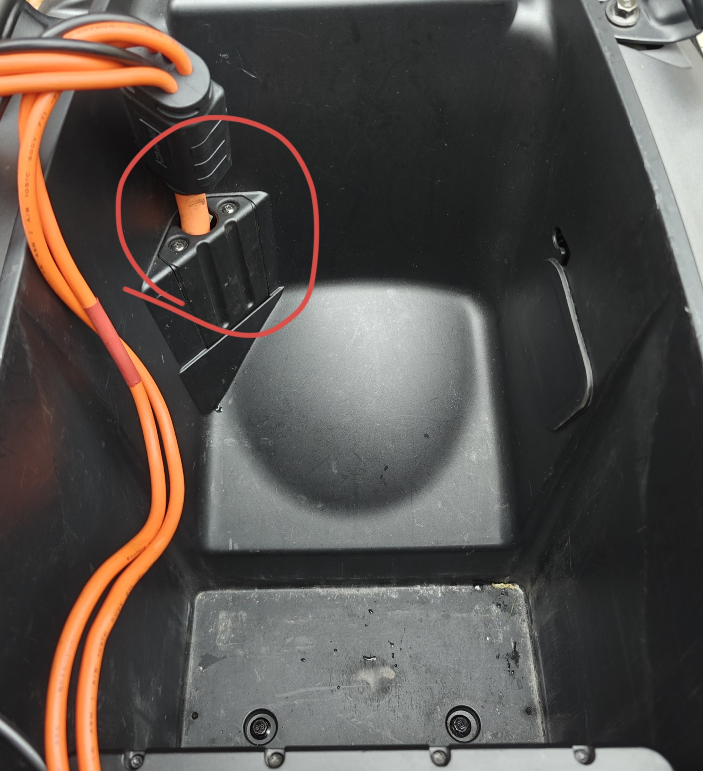 heute morgen war die Anzeige wieder weg. Also nochmal alles zerlegt. Vorn am Display keine Besserung - hier liegt der Fehler nicht, also wieder Sitz raus, Verkleidung ab. Und die Anzeige war wieder, da gibt es einen kleinen Stecker zwischen Akku und Controller - die Hoffnung war, dass dieser nur Kontaktprobleme hat. Also alles hübsch sauber gemacht und alles wieder zusammengebaut.