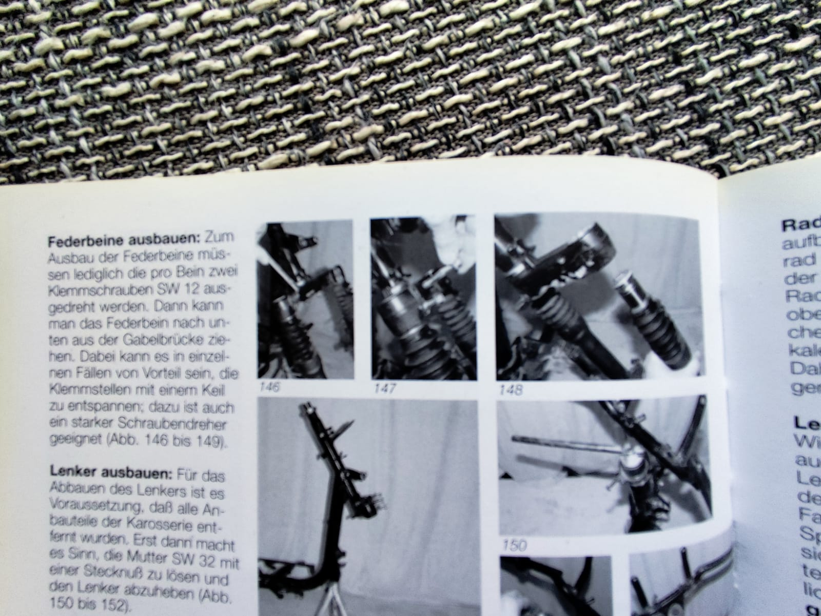 Wenn man das nicht selbst machen will (so wie ich) gibt es brauchbare Mopedwerkstätten, die sowas durchführen. Mit Glück haben die soviel Erfahrungen, dass die den bisherigen Mangel (Schlag) reduzieren können, z.B. durch ein Gabelöl mit anderer Viskosität. Damit kann man durchaus Verbesserungen erreichen, ohne dass zusätzliche Hülsen verbaut werden.