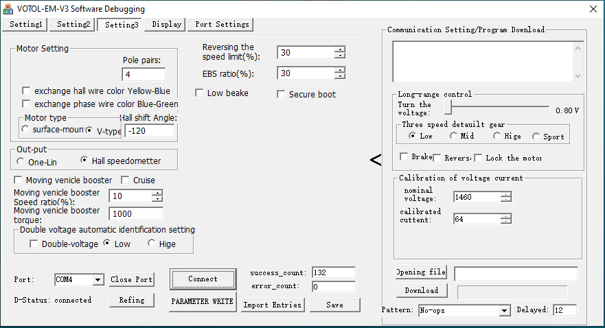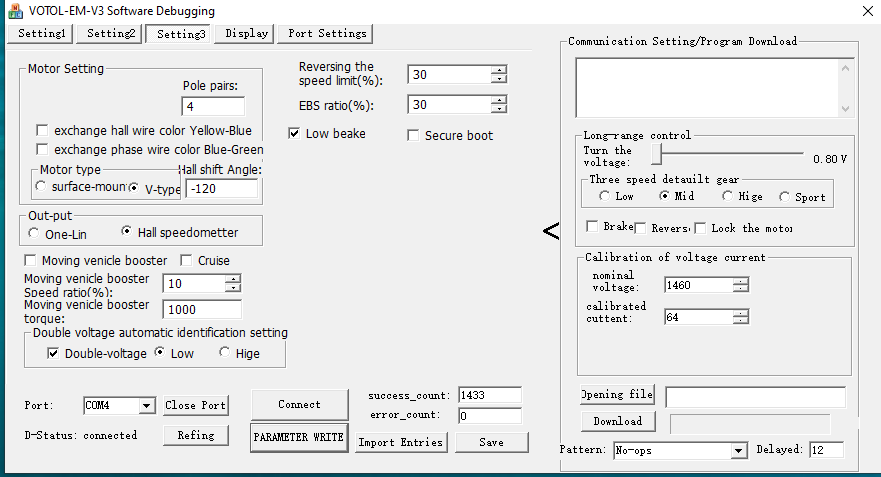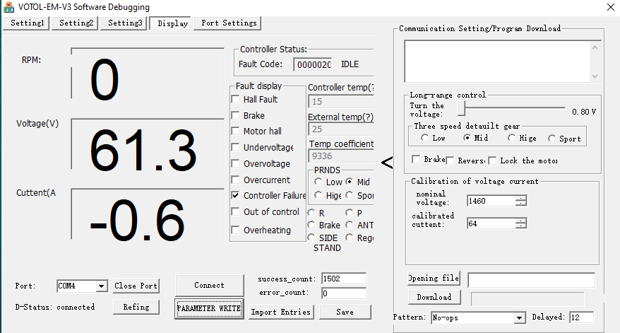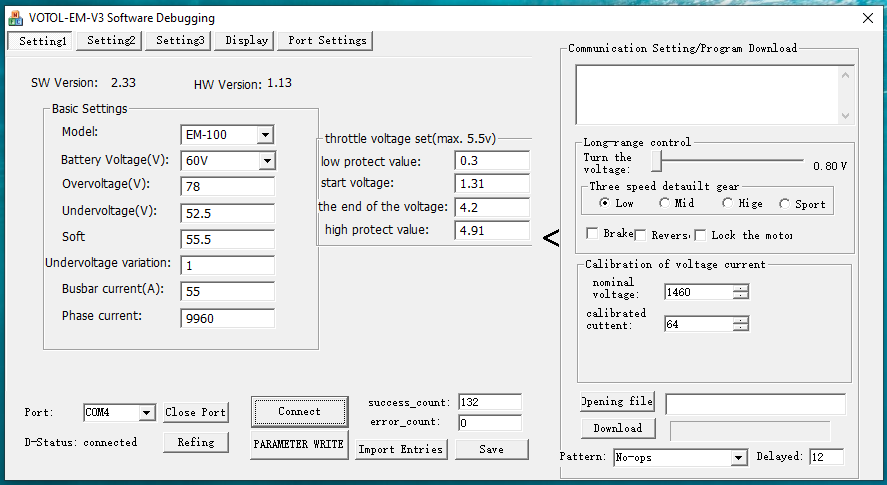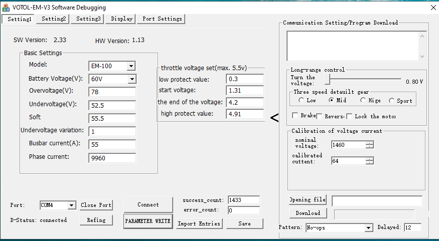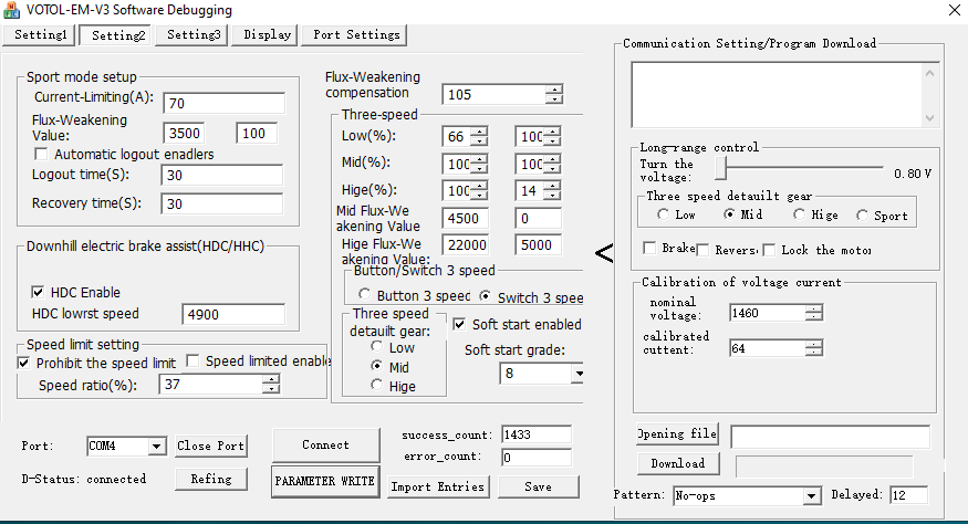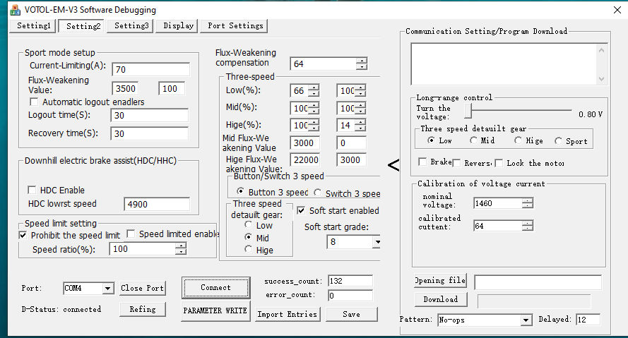 ich habe erst jetzt Deine Einstellungen am Votol gesehen und glaube, dass da noch etwas zu verbessern ist.