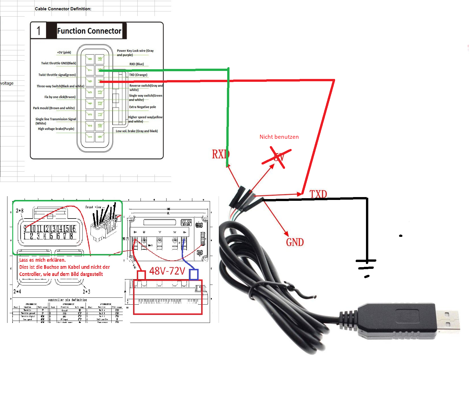 Eventuell RX und TX vertauschen wenn keine Verbindung zustande kommt. Ansonsten kann ich nur empfehlen das Angebot von E-Bike andy anzunehmen.