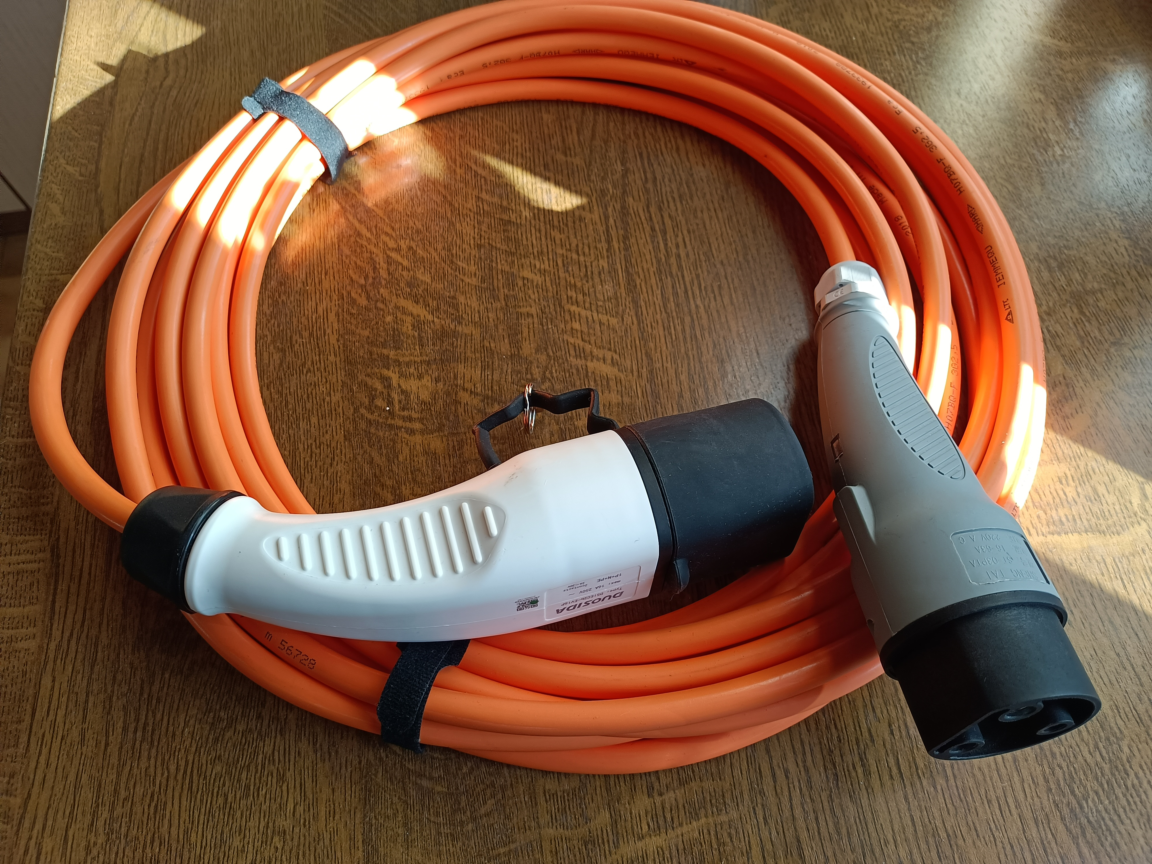Hält zubindest vorne herum warm, plus die Fahrzeugeigene Scheibenheizung. Das passt für mich soweit. Als weiteres Feature habe ich mir ein Ladekabel für die öffentliche Stromtankstelle gebastelt.