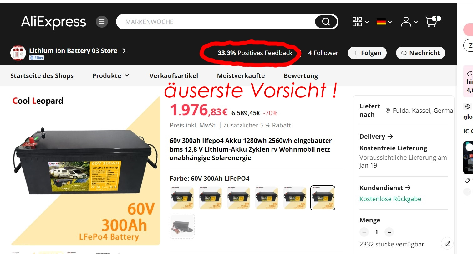 Die Version "60V 300Ah" kostet dort fast 2.000€ hat aber nicht etwa 18.000 Wh sondern nur 2.560Wh.