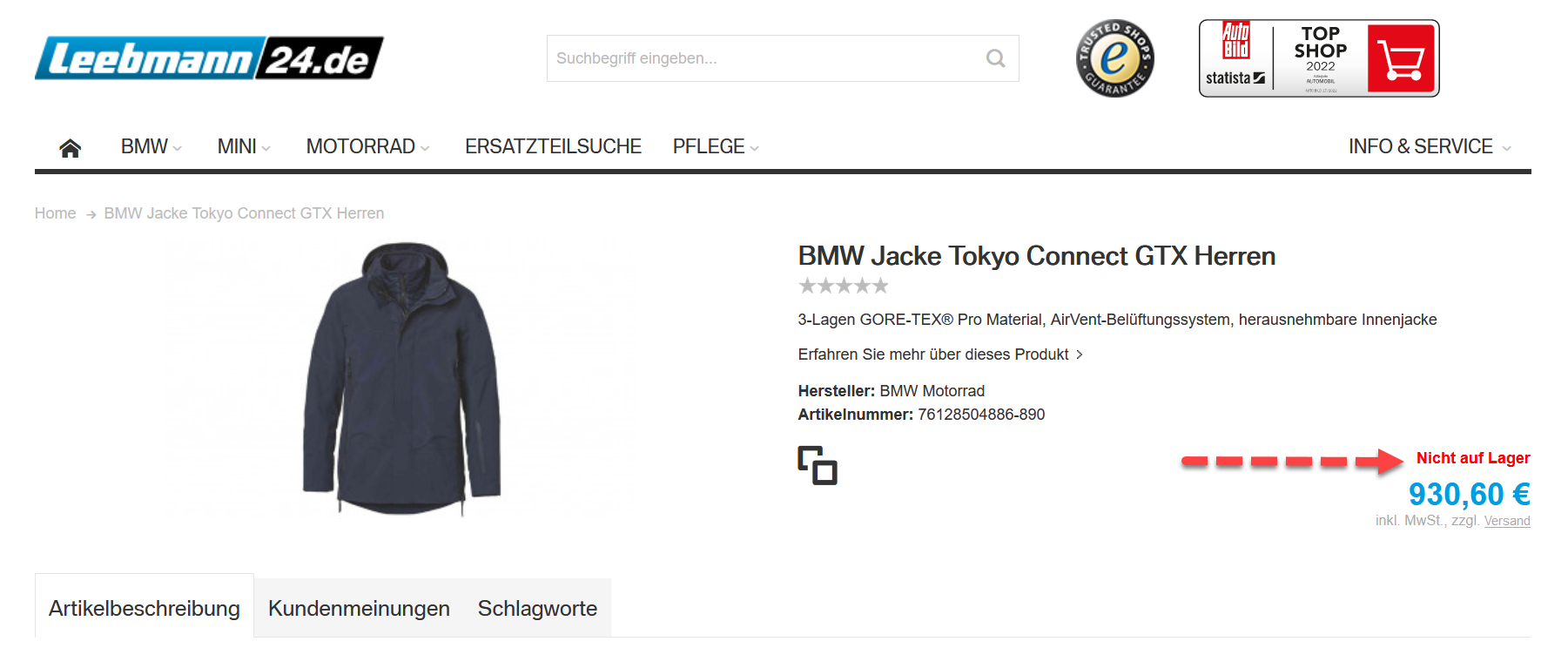 Die Jacke ist nicht (mehr) lieferbar… warum sie dann trotzdem bei leebmann gelistet ist, wissen die Götter…