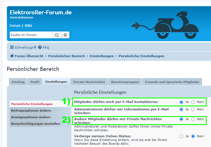 Diese Einstellung unter 1) bezieht sich zweifelsfrei auf die Zugänglichkeit der E-Mailadresse eines Forumsmitglieds! Oder sollte mit dieser Einstellung nur der Anschein erweckt werden, man könne E-Mails von anderen Forumsmitgliedern empfangen?