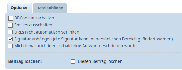 Ähnlich wie bereits bei den Optionen, nur dann eben im Reiter Dateianhänge: