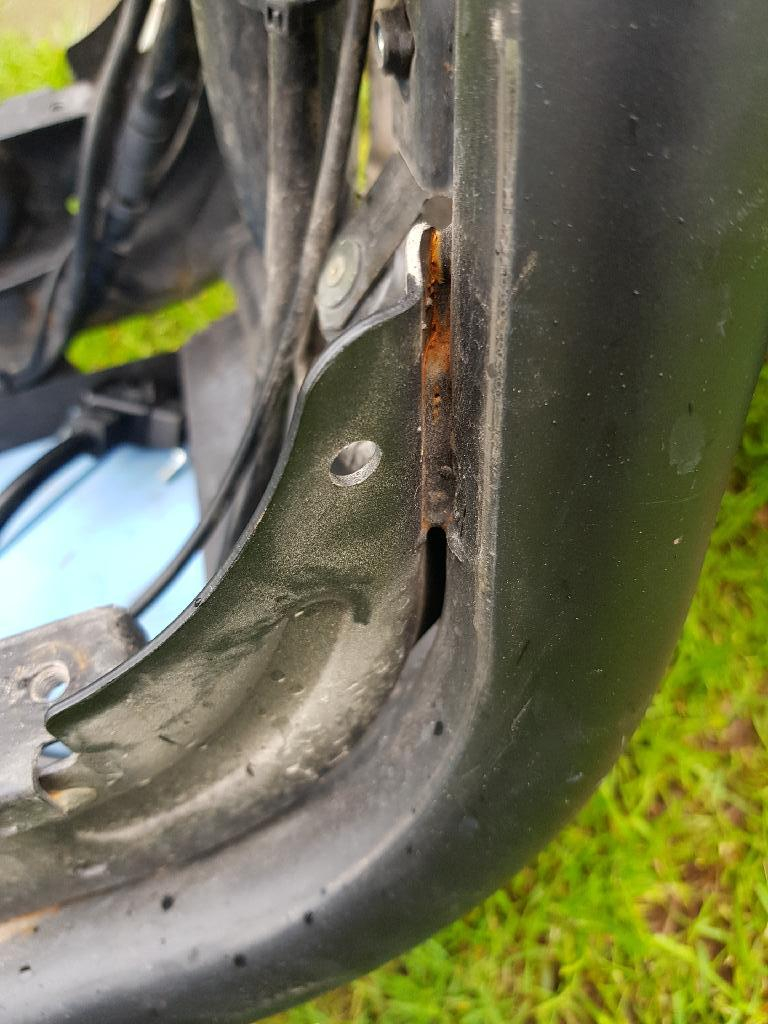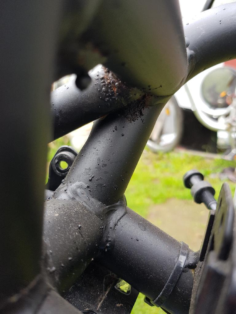 und 2 gerissene schweißnäte .schuld ist eine verwerfung im asphalt verusacht durch eine baumwurzel . zum glück kann ich schweißen :cry:
