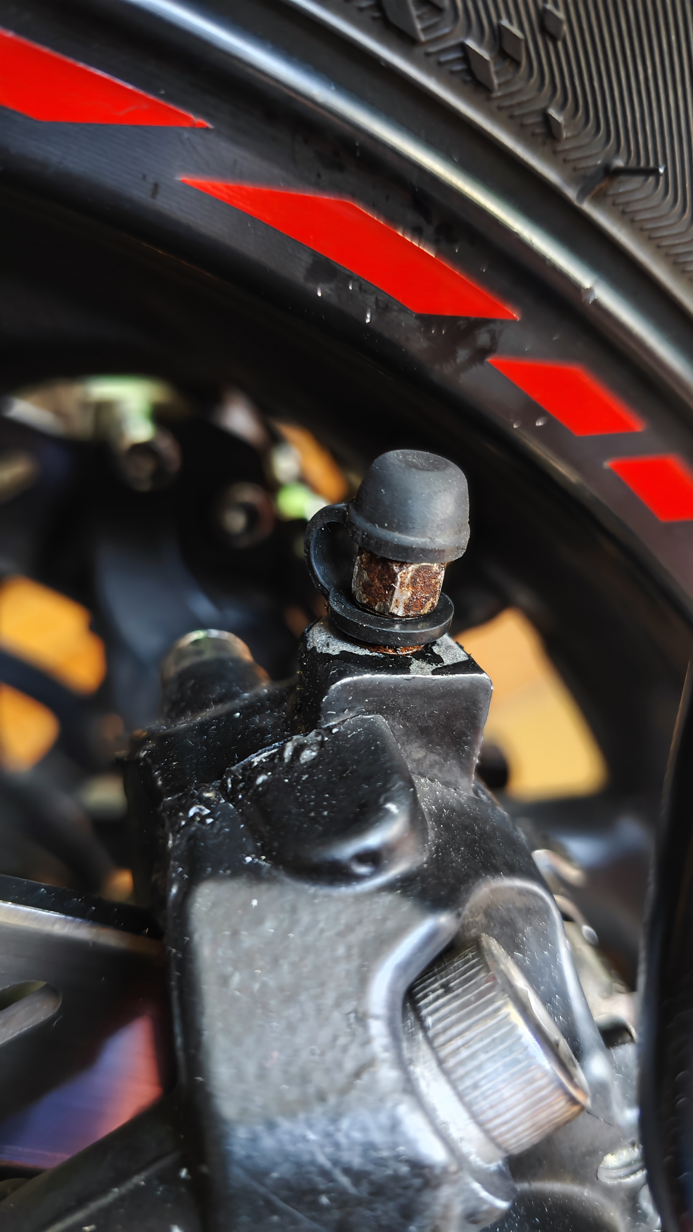 Ich hatte vor ein paar Tagen die Bremsflüssigkeit vorne und hinten gewechselt. Danach ist mir aufgefallen, dass an den Entlüfterventilen leichte Feuchtigkeitsränder waren.
