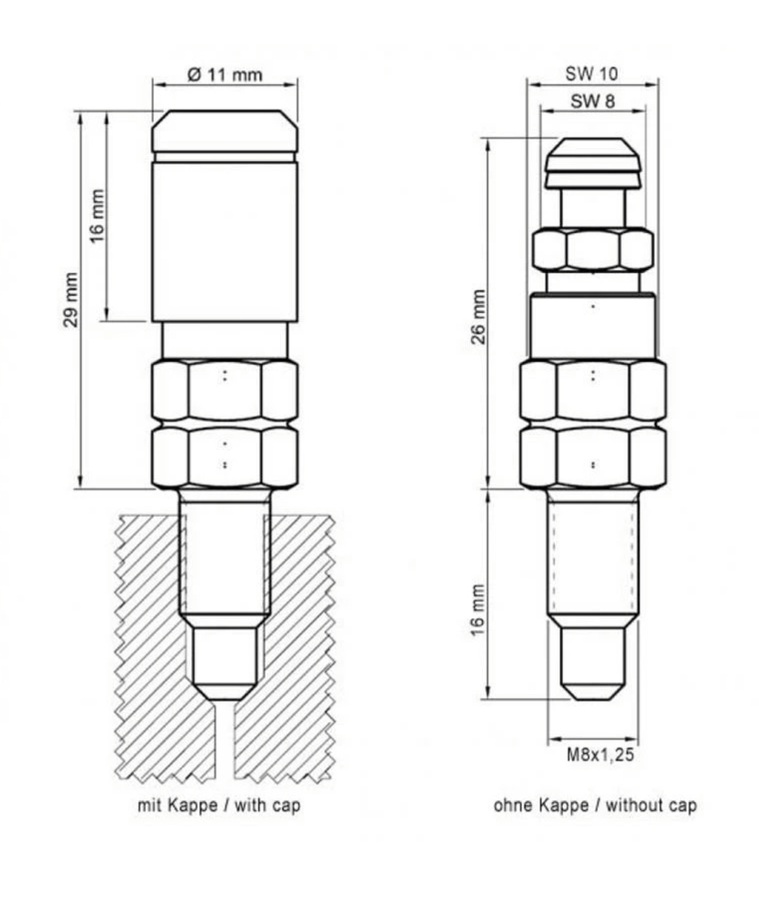 Die neuen Stahlbus-Ventile sind M8x1,25x16mm.Bremsen