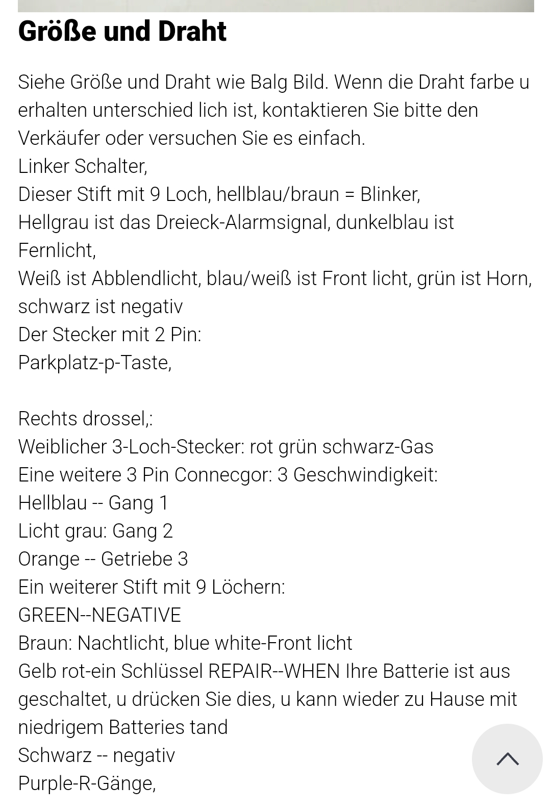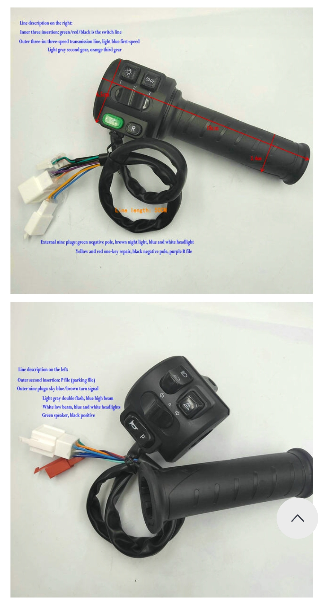 Die Armaturen selber sind aber exakt gleich zu den Originalen, also auch nicht mehr wassergeschützt. Die Kabel sind auch nur ca. 50cm lang, also ca. bis zum Lenkkopf und haben einen dünnen Kunststoffschlauch, statt des Netzschlauch bei der Alrendo.