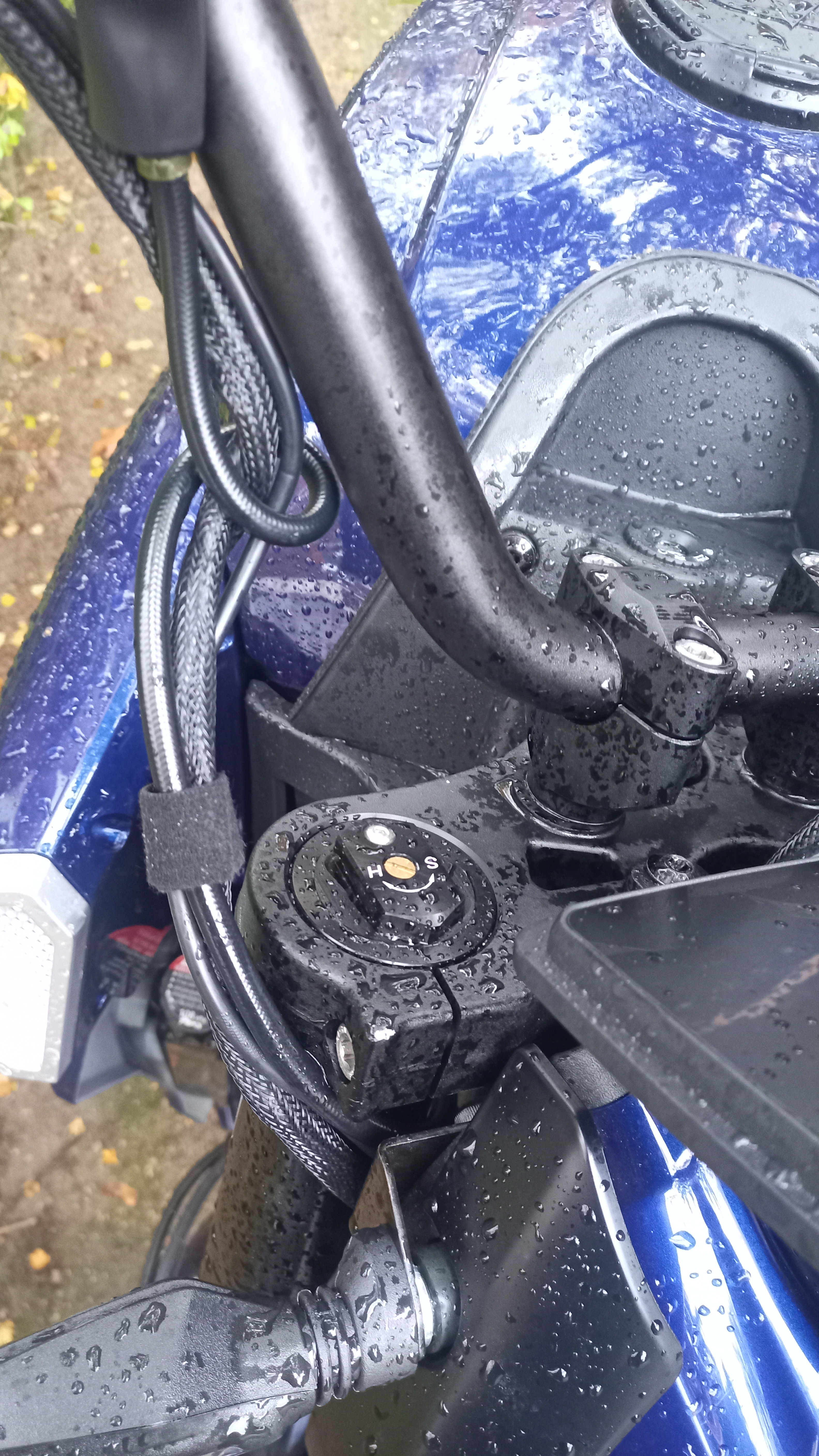 Die Kabelbinder sind bei einer Reihe von Armaturen "normal", hat NIU auch. Das ist oftmals die einzige Zugentlastung für die Kabel, und daher sollten die unbedingt dran bleiben, sonst rutscht erst die Außenummantelung weg und später reißen die Kabel oder Kontakte aus den Armaturen.