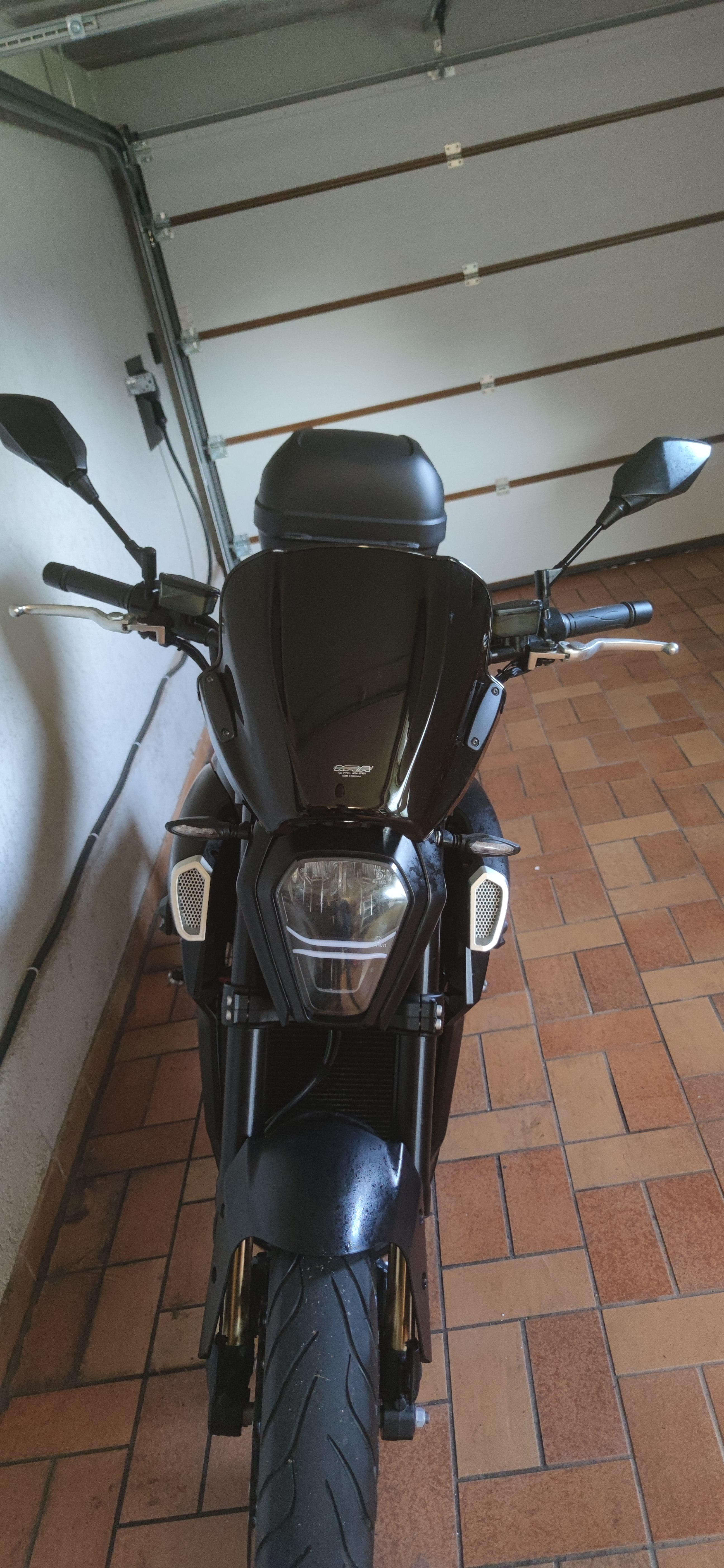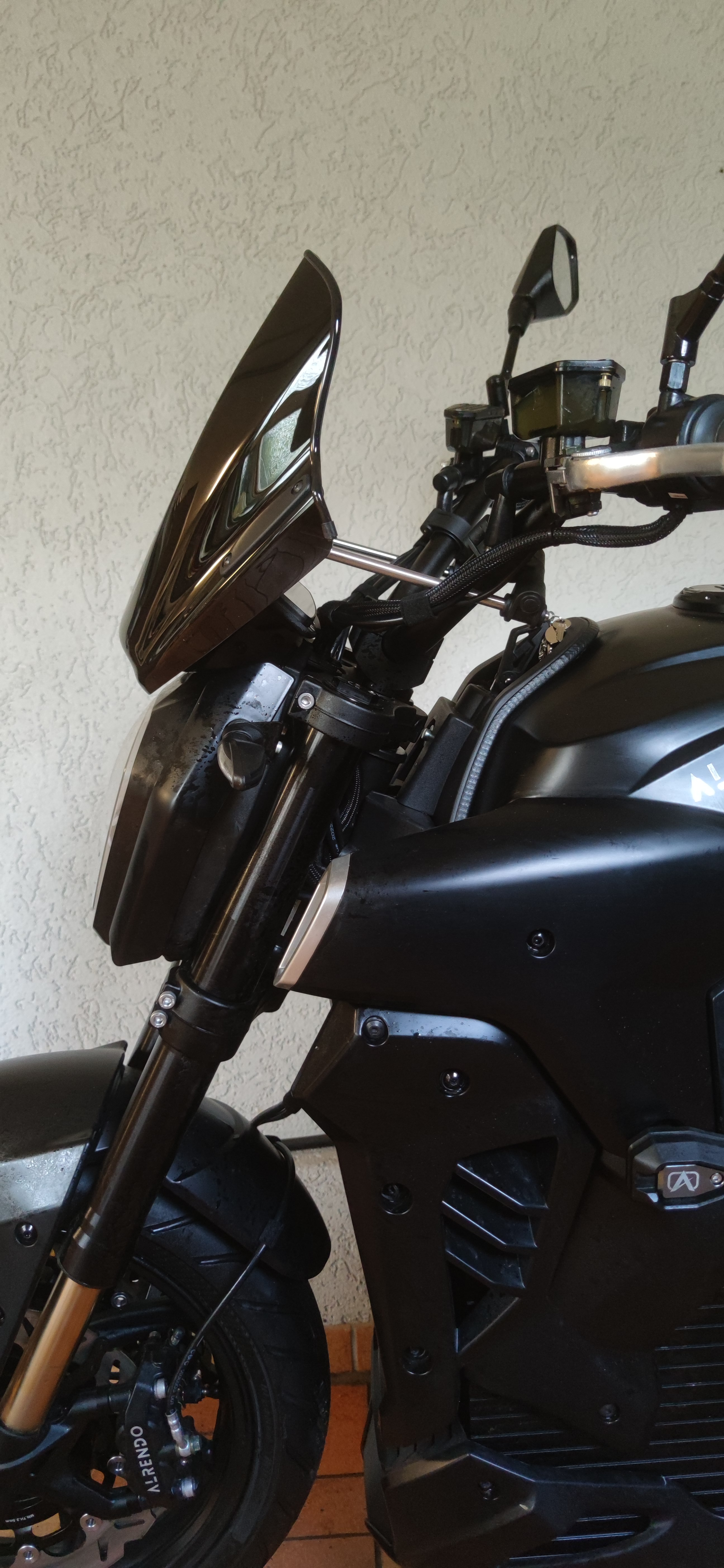 Außerdem habe ich mir noch das MRA Speedscreen Windshield montiert. Ich finde es passt ganz gut von den Rundungen und Größe zur Alrendo.