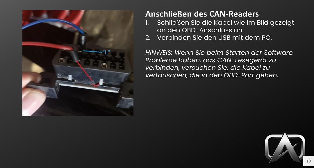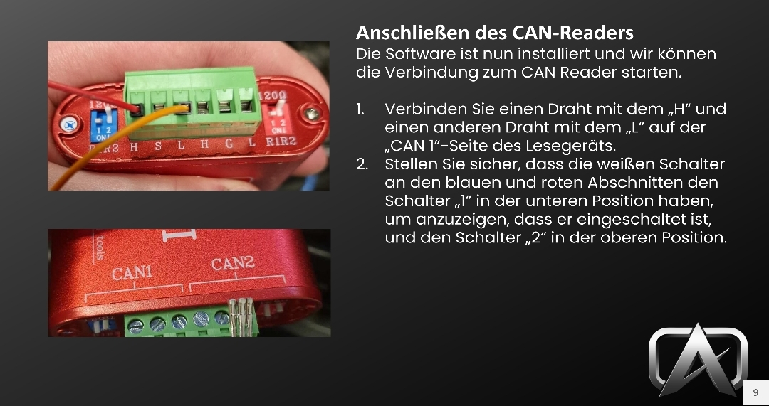 Die DIP-Schalter am Canbus-Lesegerät sollen je nach Anleitung unterschiedlich geschaltet sein und auch wird bei der TS Pin 6+14 und bei der L seltsamerweise auf Pin 1+9 abgegriffen, siehe Bilder.