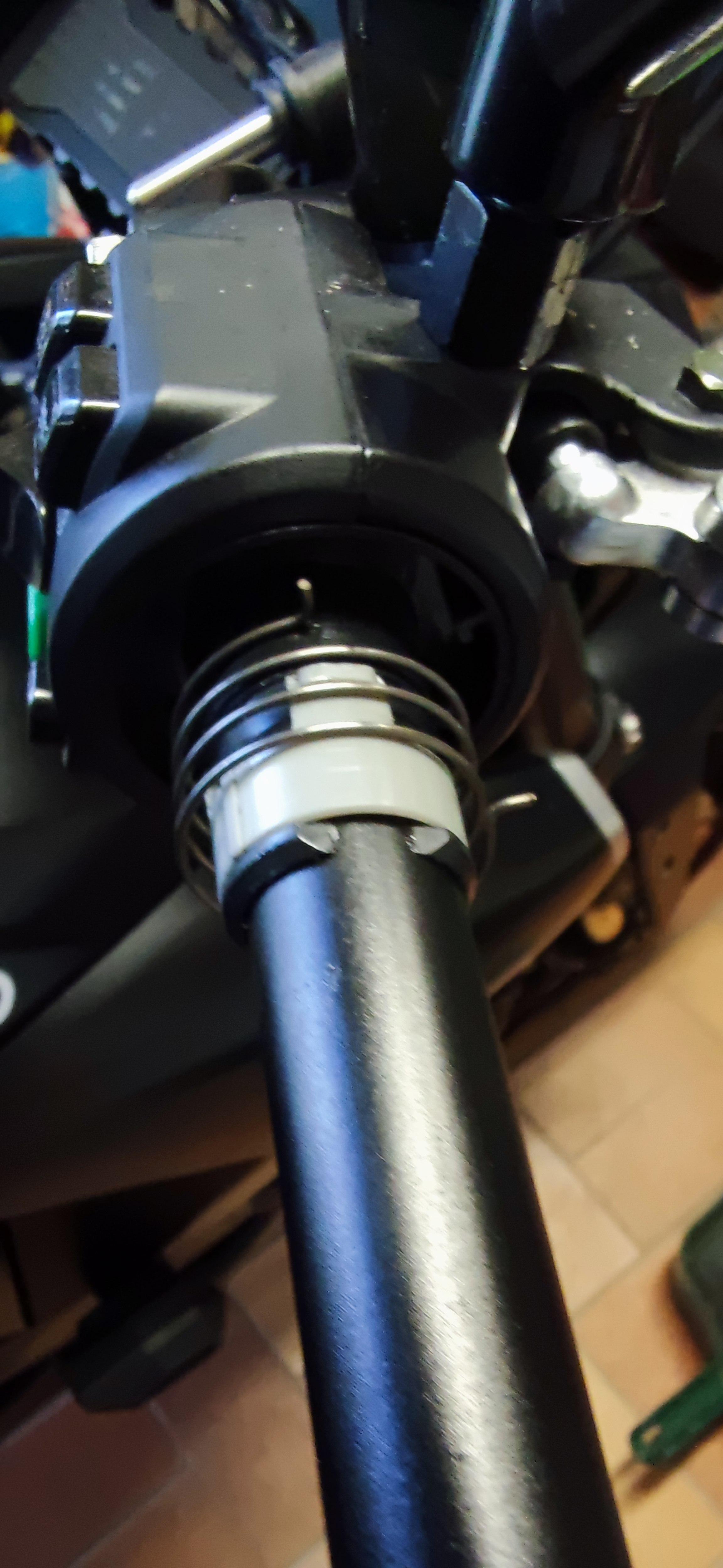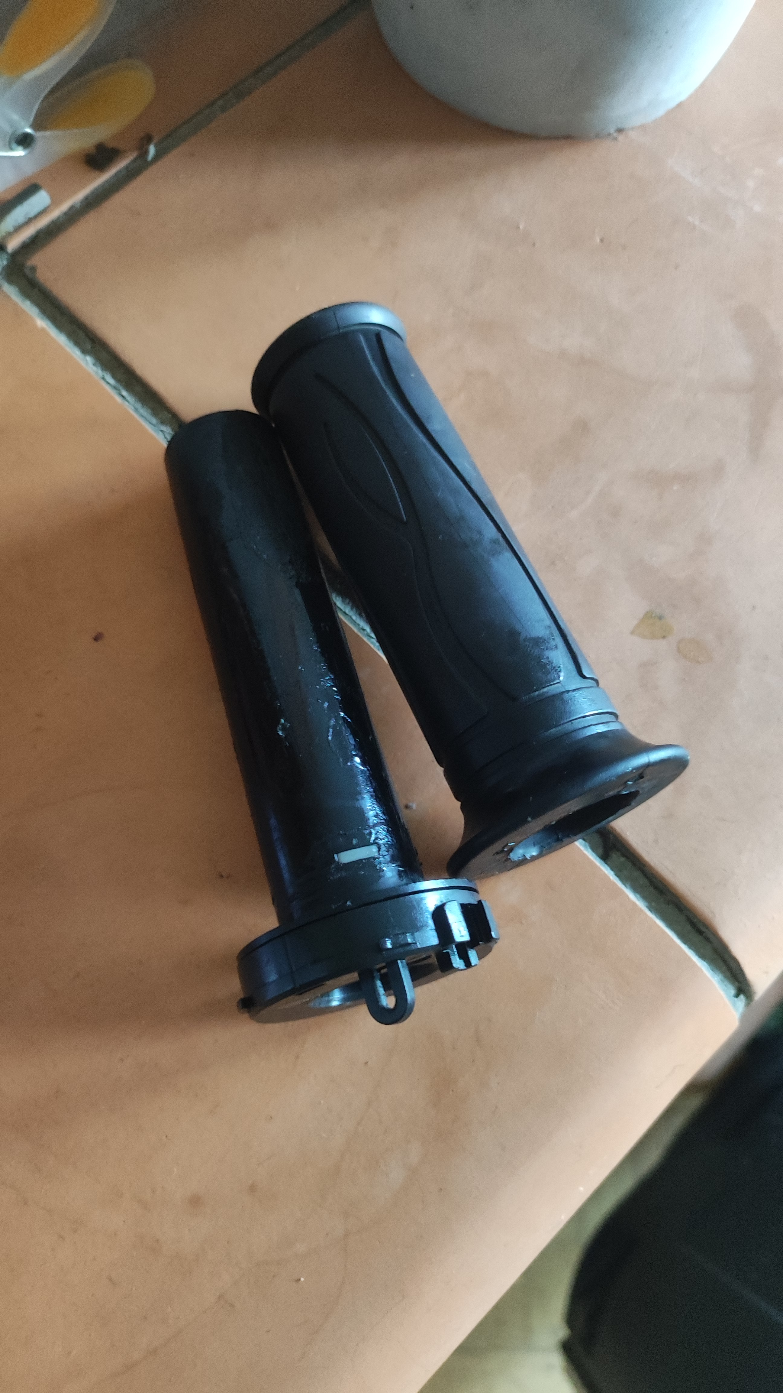 Hallo Annika, ich hatte mir ja bei der Montage der Heizgriffe die Gasrohrhülse zerstört und musste die Hülse tauschen. Dabei habe ich das Foto hier gemacht: Die Hülse fehlt bereits auf dem Foto und mit der Feder ist normalerweise ein schwarzer Ring mit einem Schleifkontakt verbunden, den man dann dreht zum Gas geben. Vielleicht ist dort Feuchtigkeit rein gekommen und man kann etwas mit einem Kontaktspray machen, was man zwischen Gummi und festem Teil rein sprüht. Zumindest übergangsweise.