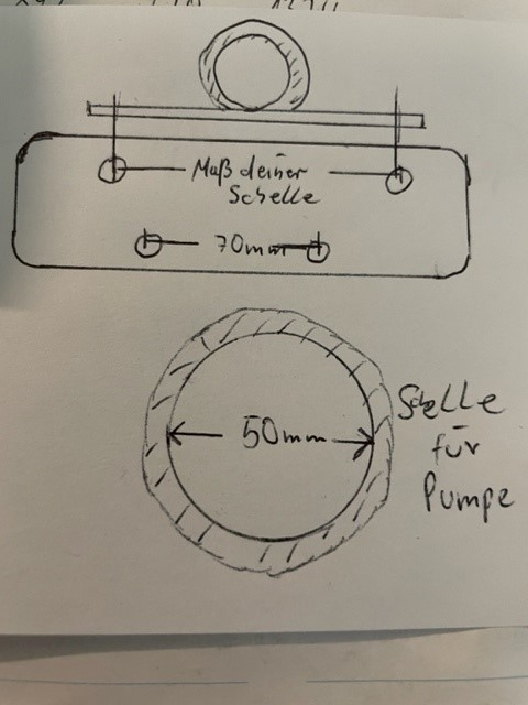 Das Teil sieht auch nicht schlecht aus . Muss halt noch ein dicker Gummi in die Schelle das die Pumpe nicht durch fällt.