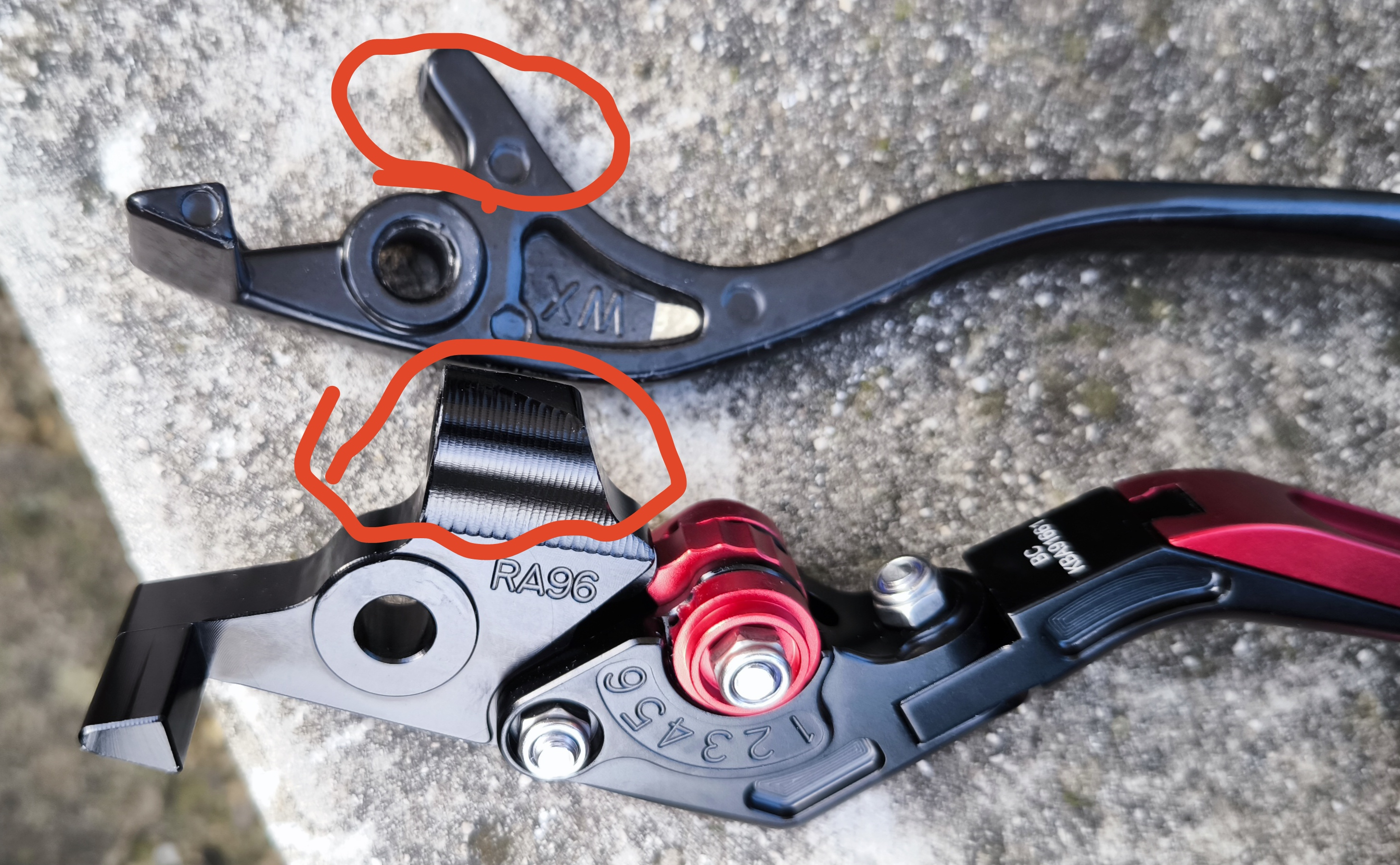 Ich habe ein Photo von den beiden Hebel gemacht und den Unterschied markiert.