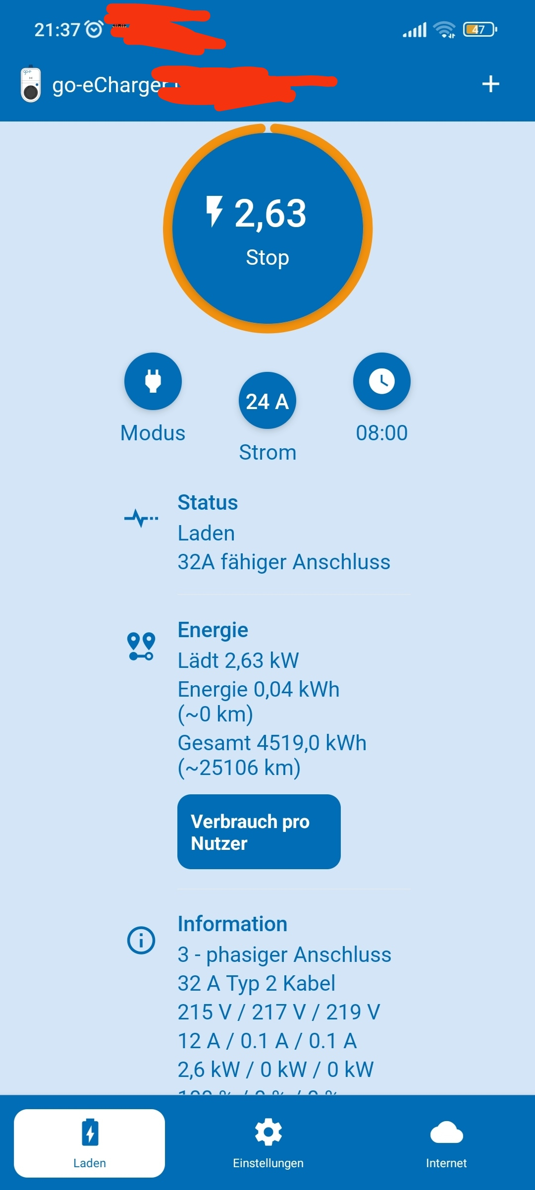 Es ist ein 22kw Kabel und die Alrendo hat 40% Akku. Auch wenn ich die Wallbox auf 32A Stelle passiert da gar nichts egal ob ich es mit 20% oder bei 80% anschließe