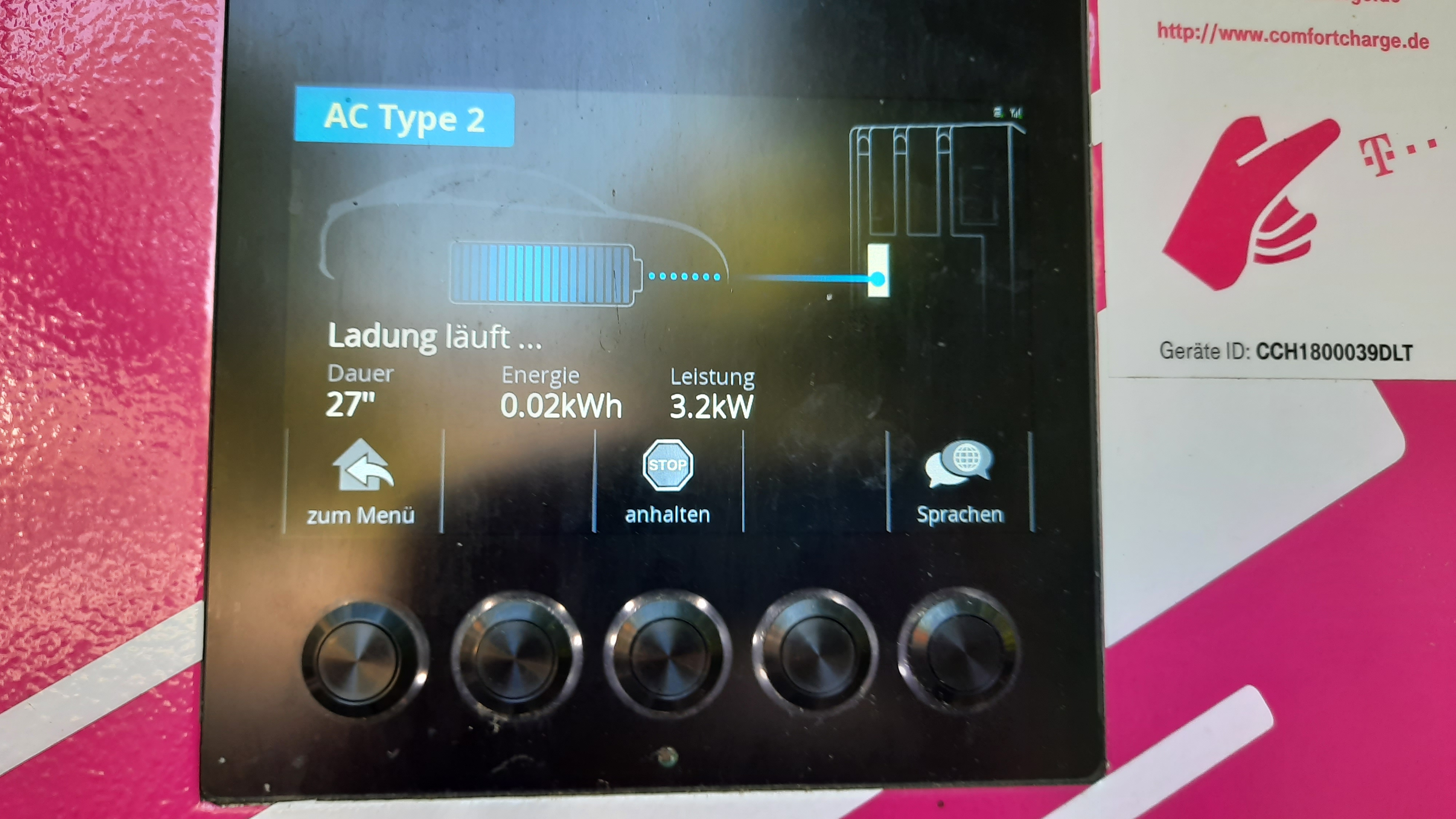 Ganz ähnliches Bild bei mir. Ladebeginn bei 25% Akkuladung an einer öffentlichen Ladestation von ComfortCharge mit fest installiertem Ladekabel. Ladevorgang wurde 3 mal abgebrochen.