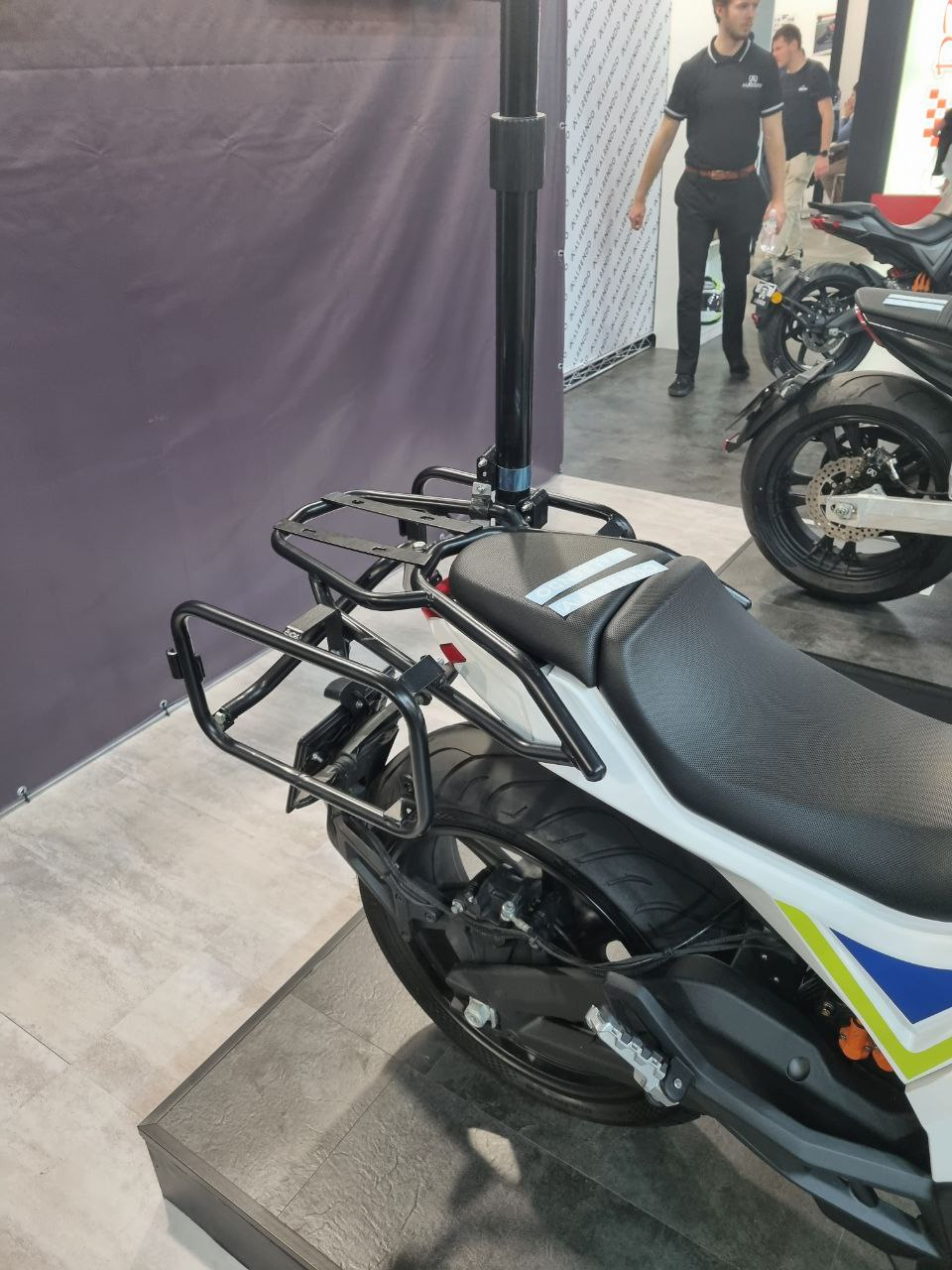 Genau die hatte ich auch bestellt, leider konnte sie mein Kumpel nicht montieren. Auch ist bei mir unter dem Soziussitz kein Platz mehr für weitere Halterungen. Ggf. müsste man da ein Custom Teil anfertigen...