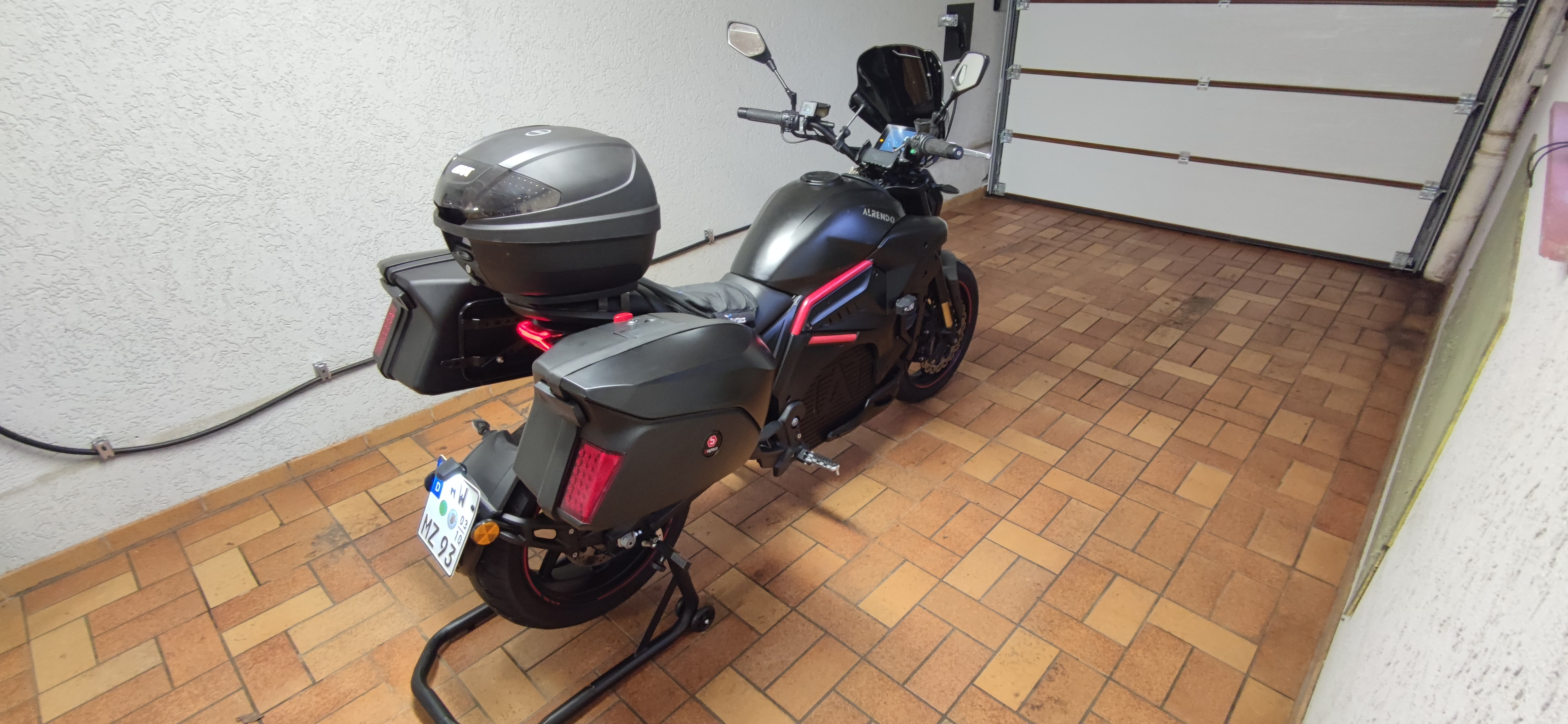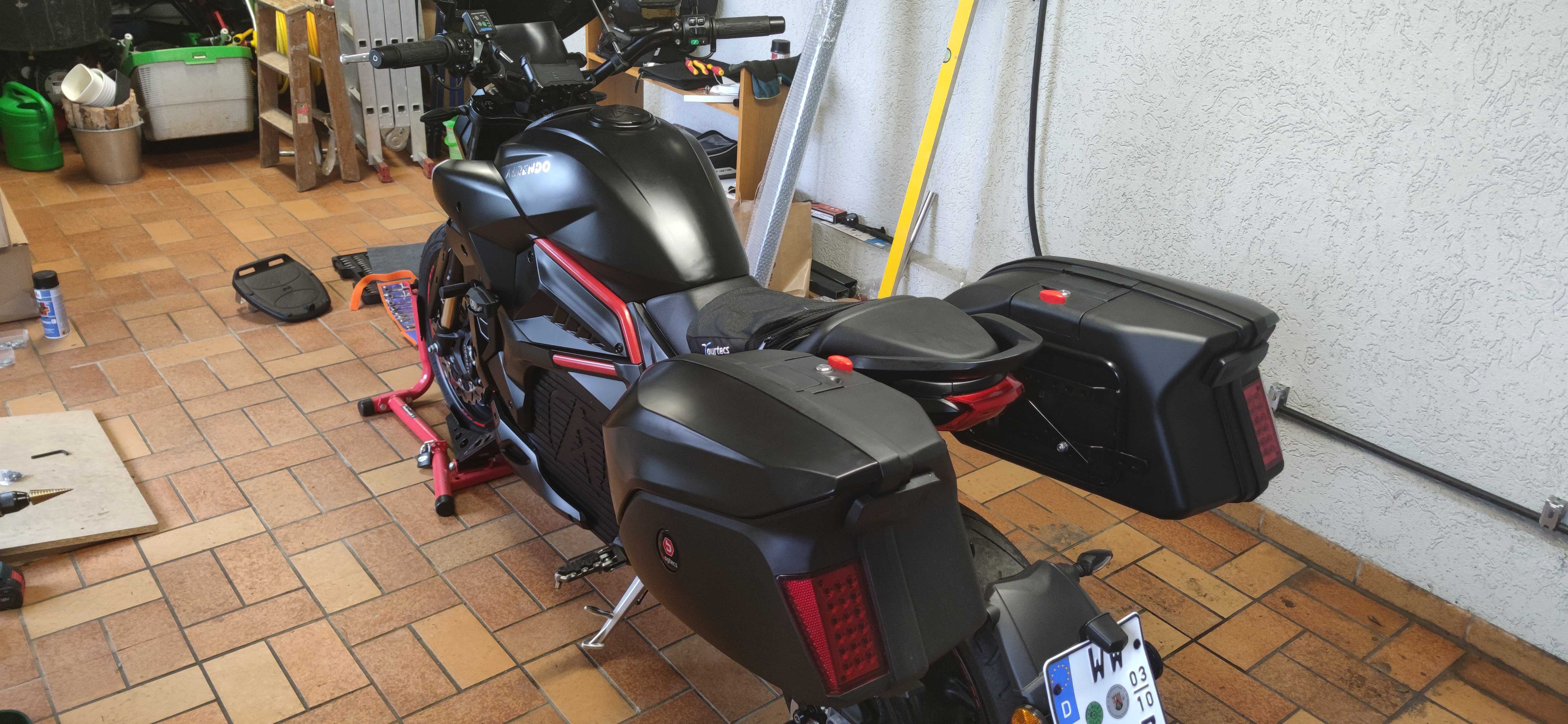 Die Koffer gibt es auch mit LED-Leuchten statt der Reflektoren, aber dann hätte ich das noch verkabeln und bei jedem abnehmen die Steckverbindungen trennen und verstauen müssen. So oft benutze ich das dann doch nicht.