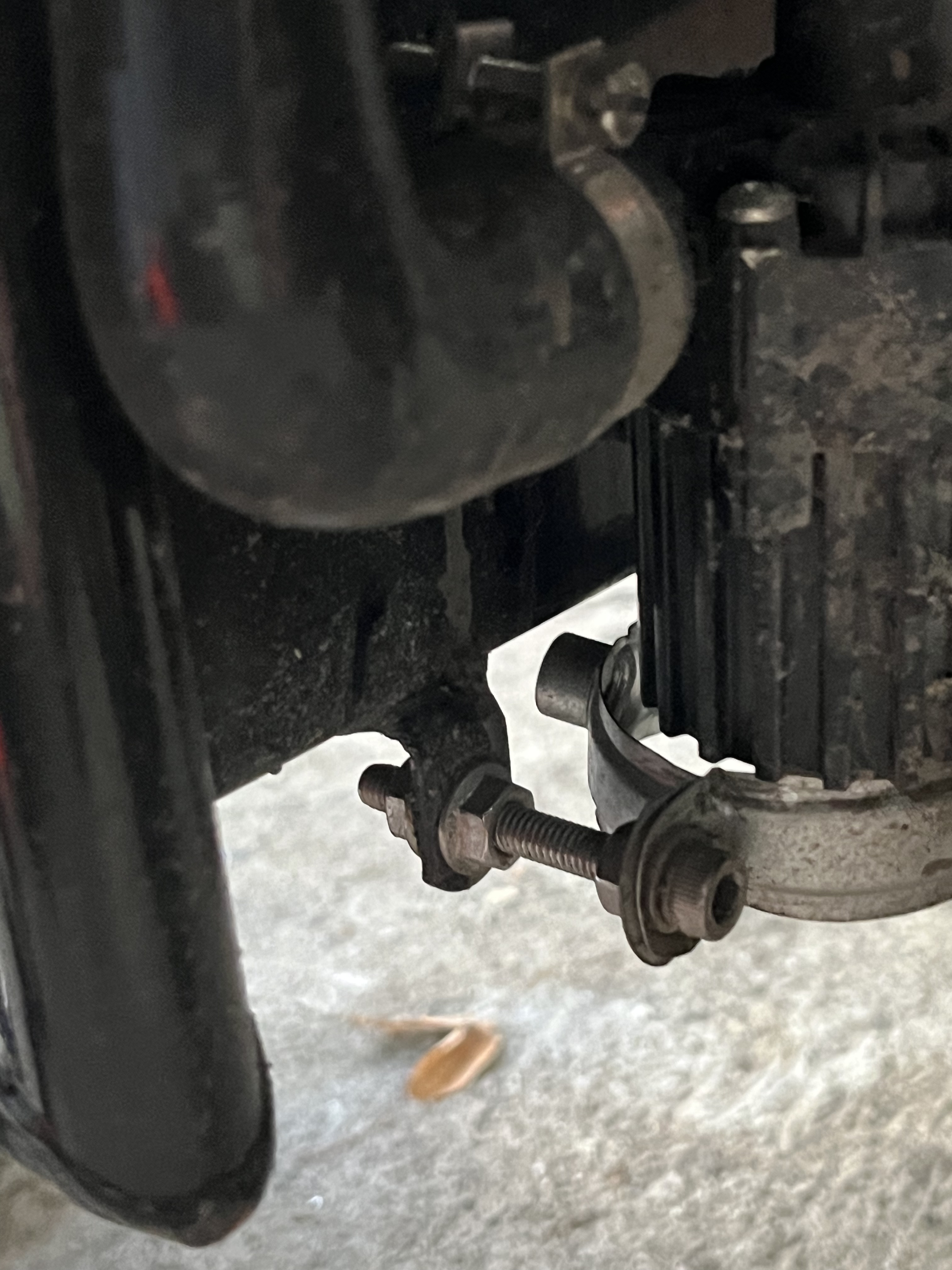 Wenn du das kleine Panel abschraubst kannst aber mal rein schauen ob du den hinteren Bügel