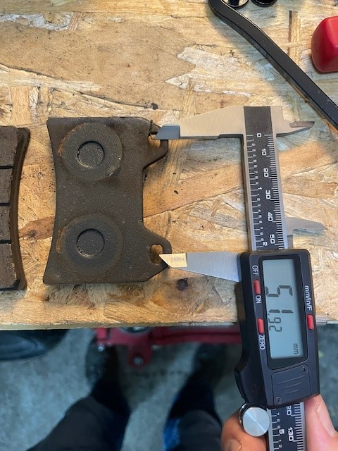 Hier mal was intersantes . Auf meinen Bildern für hinten sieht man das der Kolben keinen kompletten Abdruck auf dem Belag hinterlassen hat.