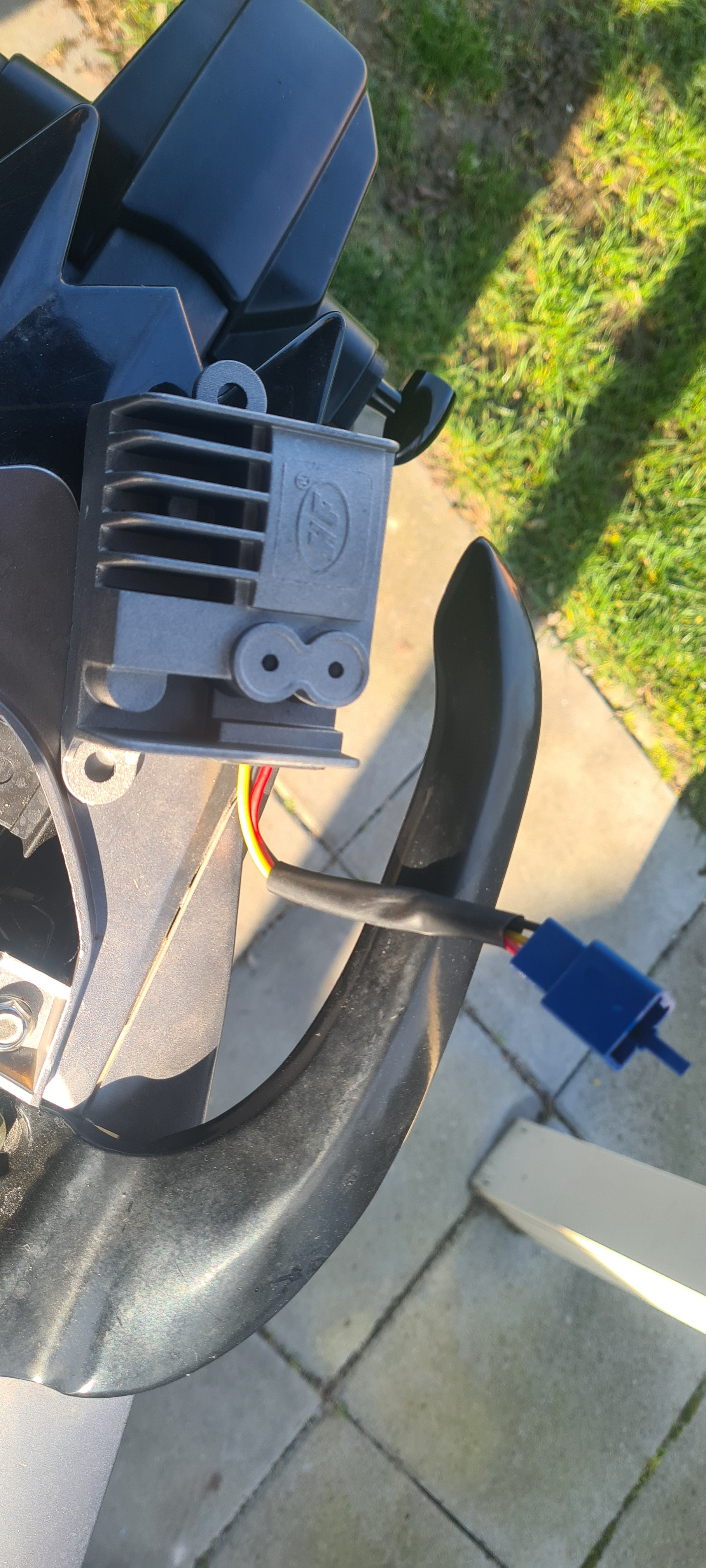 So, heute kam der neue Konverter an. Leider ist es ein anderer als der originale. Der alte hatte nur ne Buchse und der neue hat ein Kabel mit Stecker. Leider sind die Farben andere als an dem Stecker vom Moped.