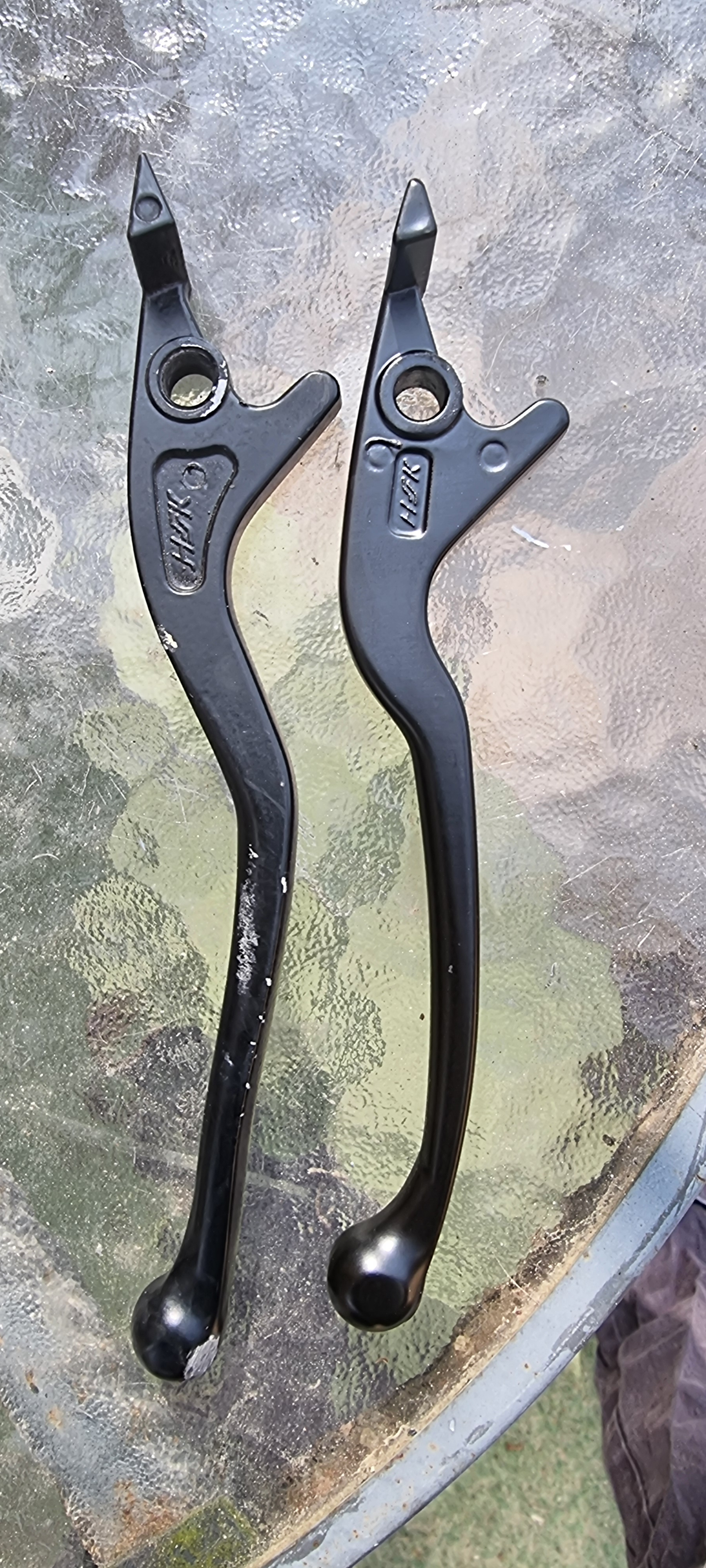 Also mein alter Bremshebel hat sich beim Sturz nur verbogen. Den konnte ich wieder zurück biegen. Ist kaum was zu sehen. Nur an der "Kugel" etwas abgeschliffen. Will den aber trotzdem ersetzen!