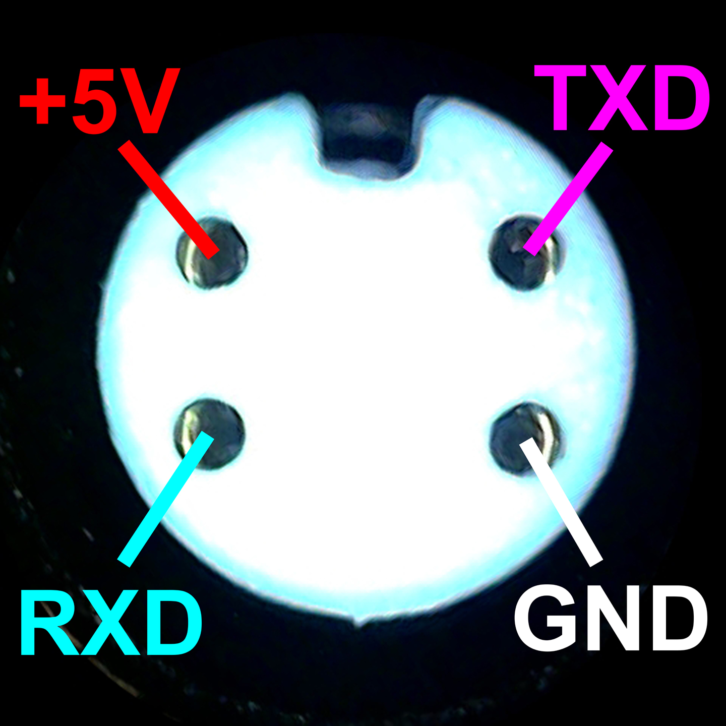 GND und +5V sollten so einfach zu finden sein. Bei "RXD", also der Leitung auf welcher der Controller nach Daten lauscht, sollte konstant ca. 3V aufweisen. Die "TXD"-Leitung zappelt jedoch beim Einschalten des E-Odins zwischen 0 und 3.3V rum, weil der Controller da initial Daten rausschiebt.