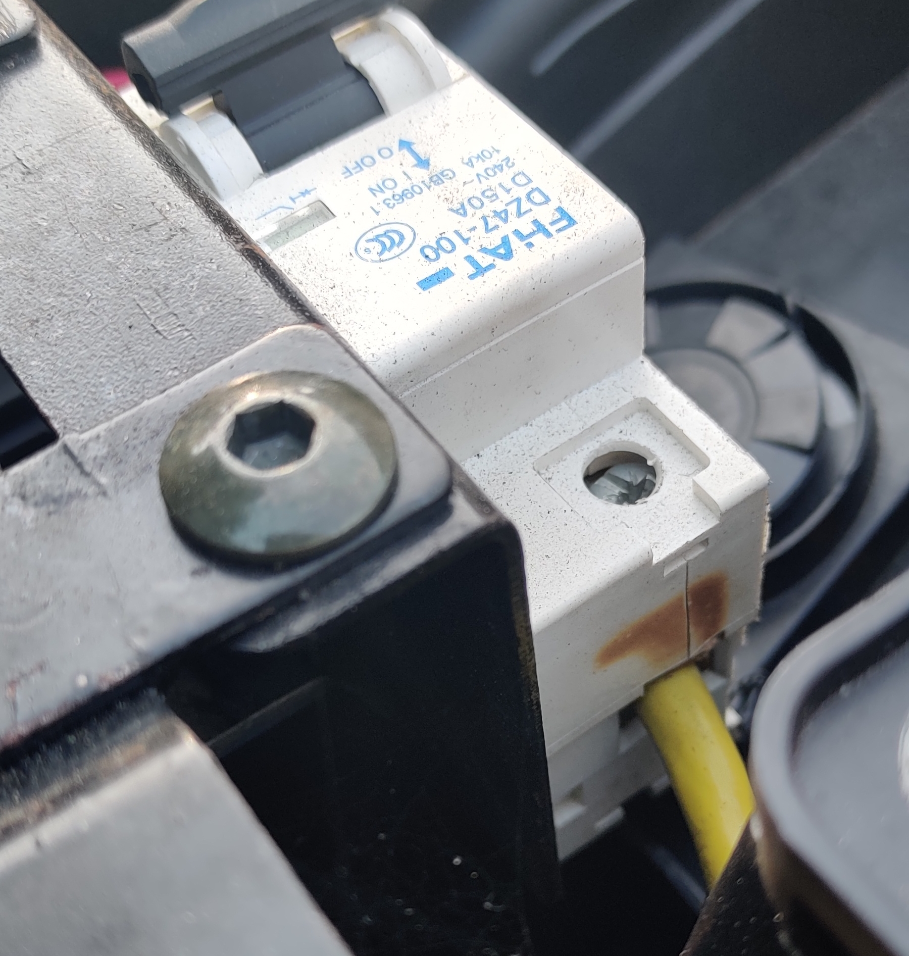 Ich muss mich mal kurz zu Wort melden, korrigiert mich wenn ich falsch liege. Soweit ich weis, hat der LSS Automat überhaupt keine "Sicherungs"-Wirkung. Denn es ist ein Wechselstromautomat welcher bei Lastunterbrechung den Gleichstrom-Lichtbogen gar nicht löschen könnte. Außerdem sind diese Hutscheinen-Standard-Schraubterminals doch gar nicht vibrations-sicher. Für mich sieht der Automat eher wie Schalter anstatt einer Sicherung aus.
